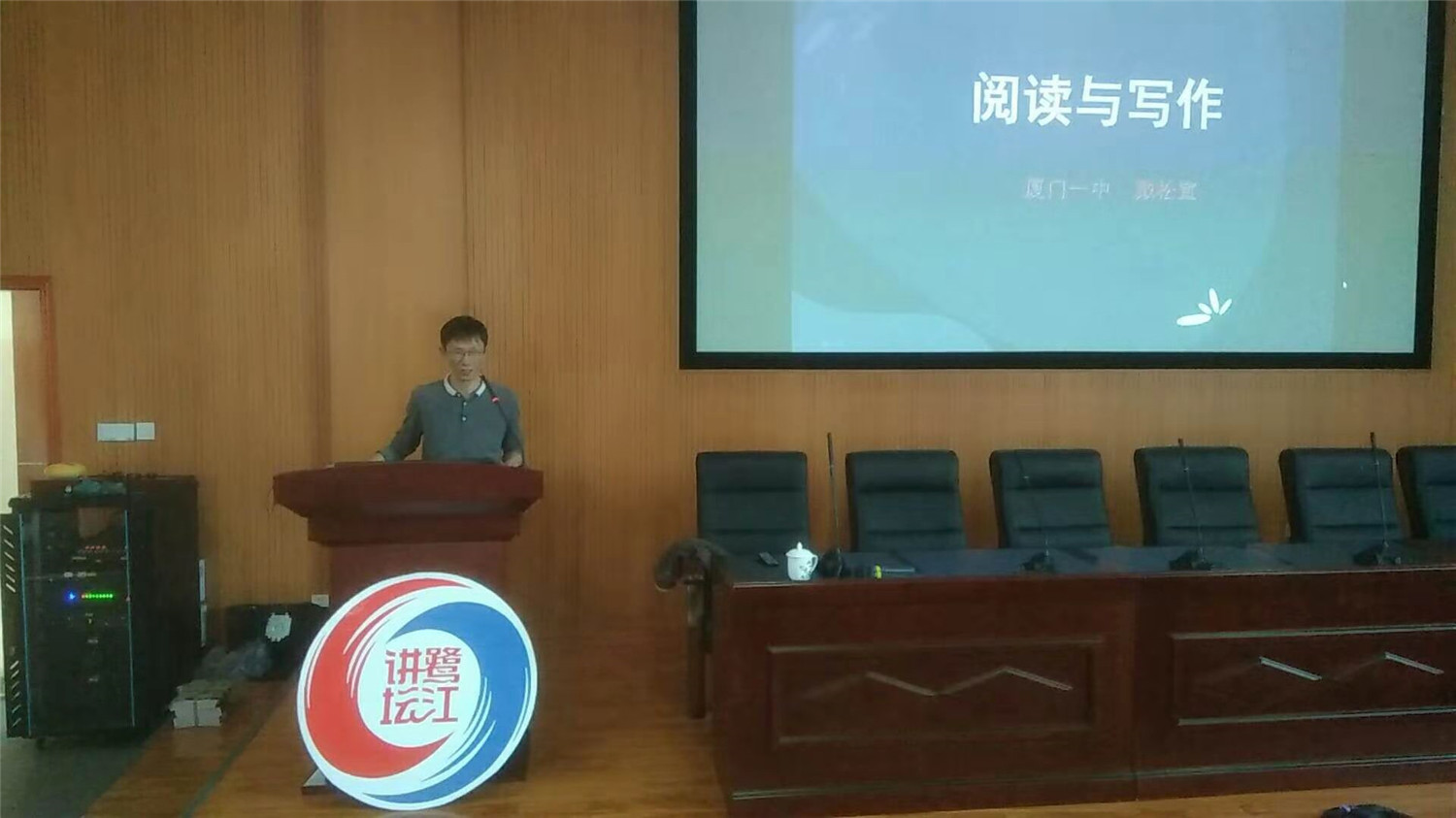 12月2日下午,翔安区图书馆邀请“鹭江讲坛”报告人、厦门一中优秀备课组长戴松宣老师为新圩学校七年级的学生们,开展了一场《阅读与写作》的公益讲座。