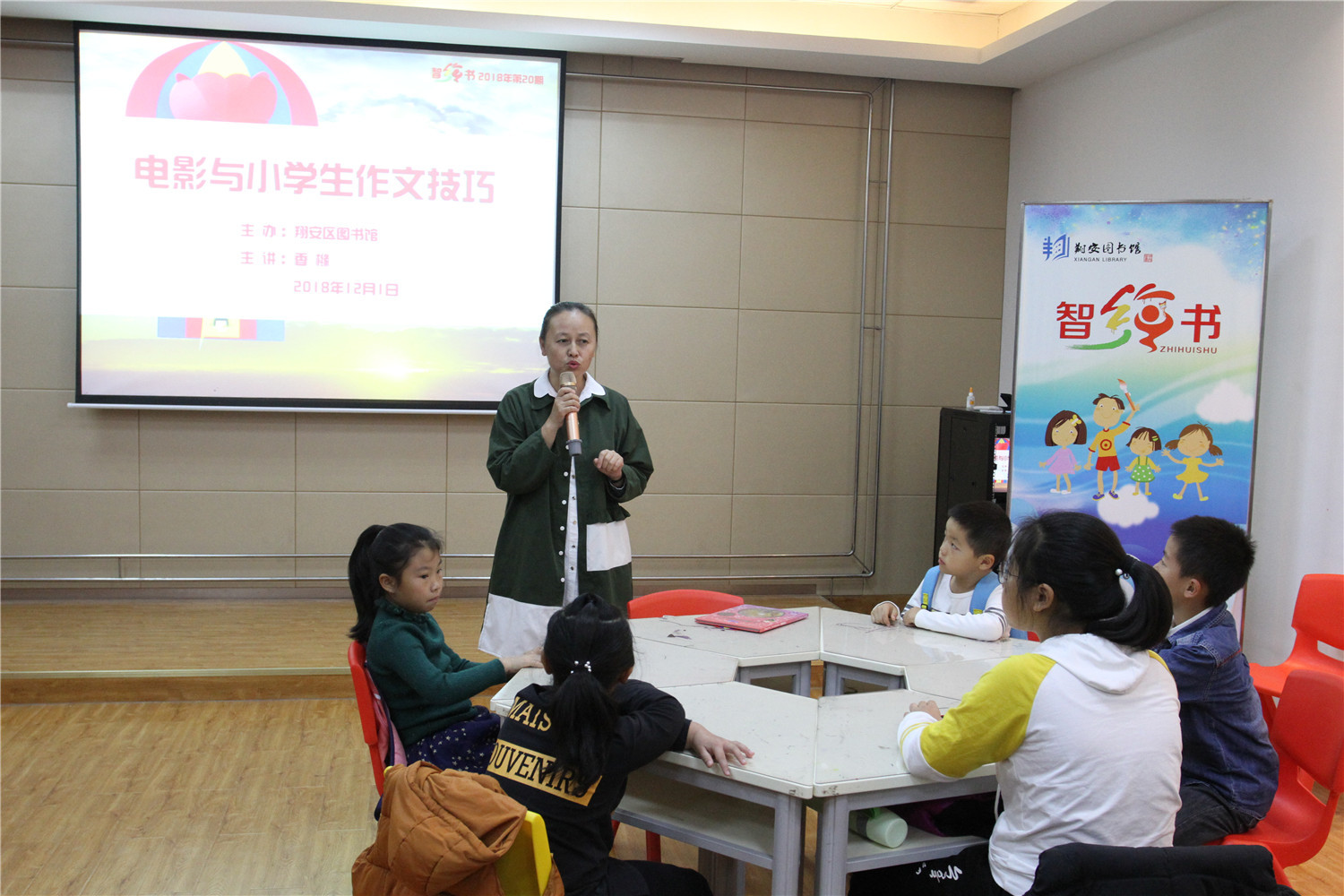 12月1日,翔安区图书馆邀请了福建省作家协会会员、编剧、儿童文学作家香橼老师为小读者们举办智绘书——“电影与小学生作文技巧”活动。