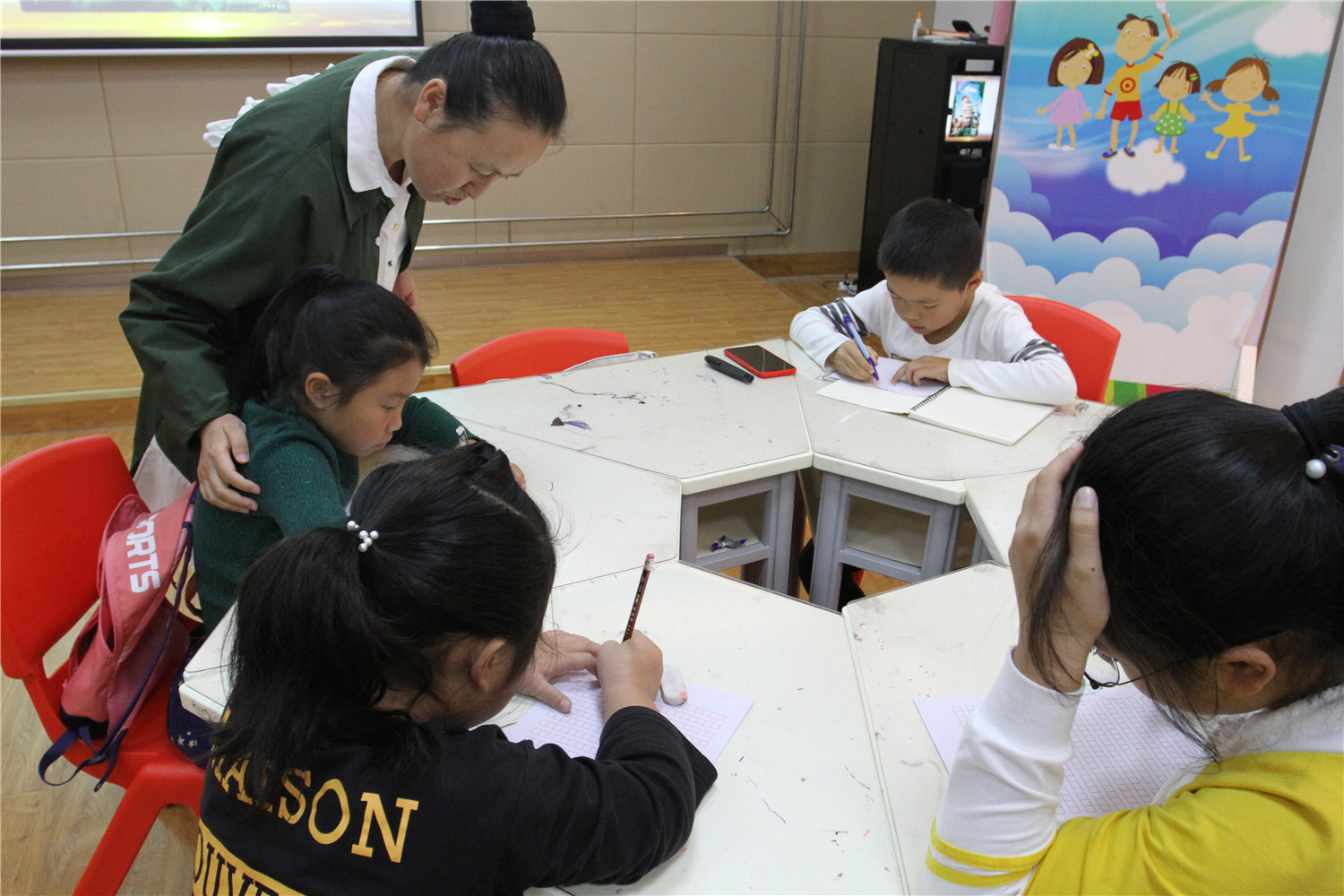 本期“智绘书”活动,香橼老师首先向小读者们介绍了1783年12月1日首次实现氢气球载人飞行的故事;通过观看电影和阅读书目《飞屋环游记》,让他们感受情节的跌宕起伏,学习文中动作与对话的描写;现场指导他们续写故事《飞屋环游记》②,并对他们的作文进行指导;手工书制作环节,老师指导小读者们以“飞屋”为封面,制作出一本承载着自己梦想的“智绘书”。