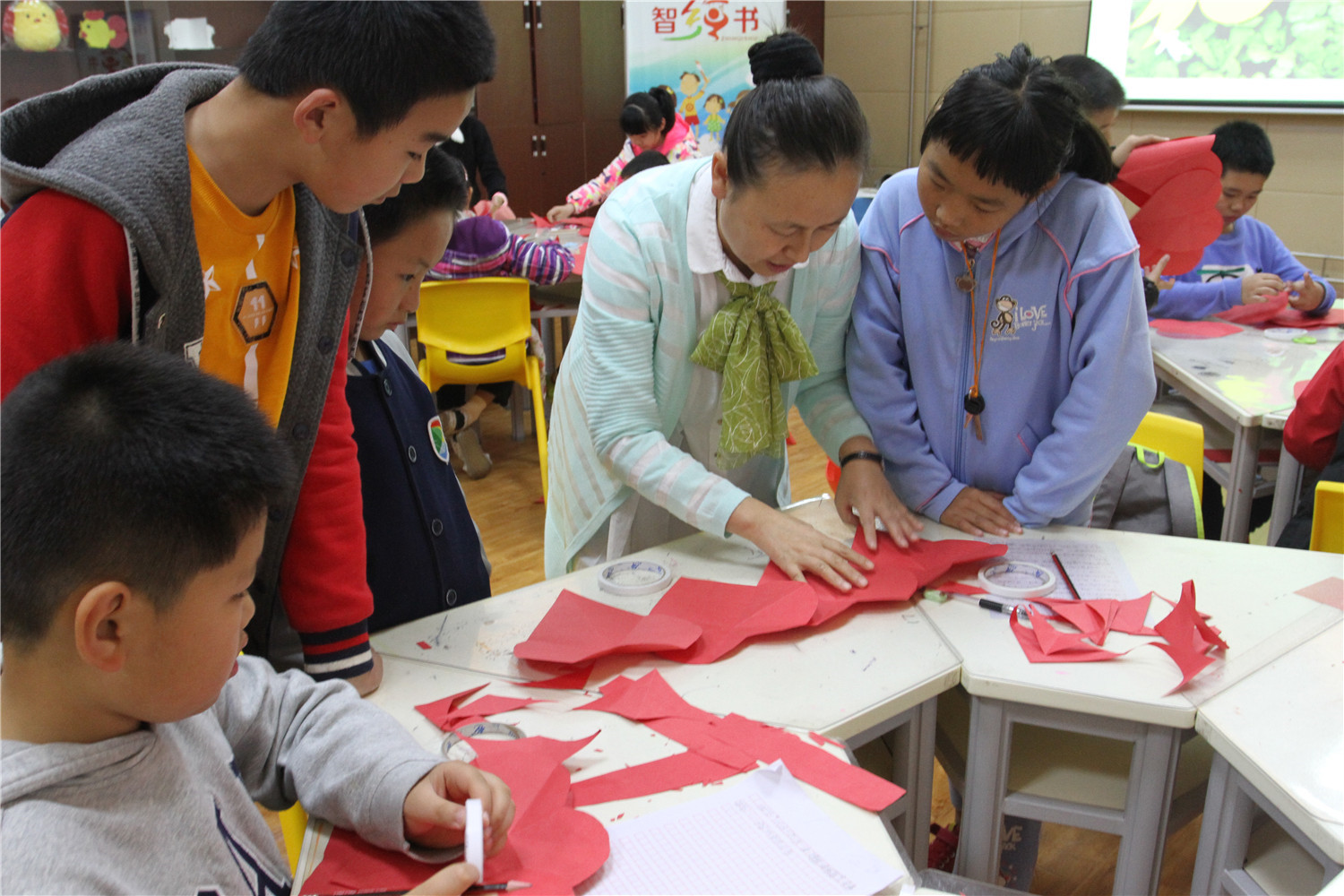 本期“智绘书”活动,香橼老师首先向小读者们讲述了《猜猜我有多爱你》的绘本故事,学习绘本中的写作手法,并现场指导他们结合适当的想象、添加细节进行作文;手工书制作环节,老师指导小读者们以绘本中“两只兔子”的形象为封面,制作出一本充满爱的“智绘书”。