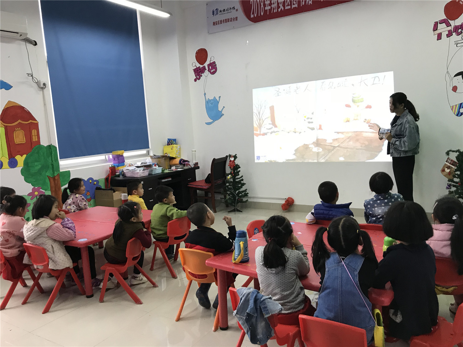12月23日下午,翔安区图书馆二楼综合活动室举办了“故事妙妙屋”2018年圣诞节专场活动。此次老师为小朋友们讲述了《咕噜的圣诞节》的绘本故事,这是一个温暖的圣诞节故事,通过展现小狗咕噜及它的小伙伴们的日常生活,展示了孩子单纯美好的内心。故事结束后,老师指导小朋友们制作圣诞老人,并让他们绘制圣诞心愿卡,挂在圣诞树上。
