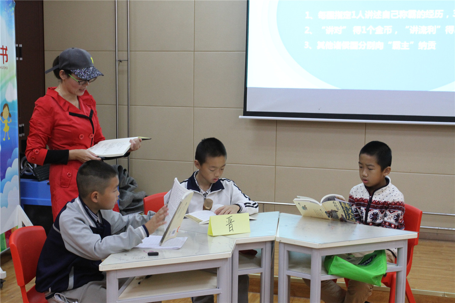 第二周的读书活动中,由分好组的“各诸侯国”分别阐述本国称霸之路,赚取金币;接着由各诸侯国辩论自己在“人才”、“德行”和“国力”方面的具体做法,互相抢金币,然后回顾历史名人——孔子的一生,对儒家思想有初步的认识。最后依照金币数,评选出齐和楚为春秋争霸之新霸主。整个活动设计既有横向的五霸对比,又有纵向的故事串联,调动了小读者的参与的积极性。
