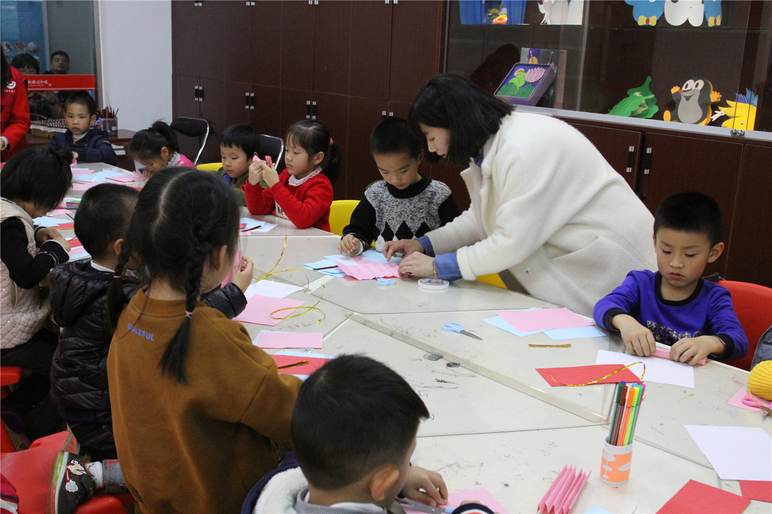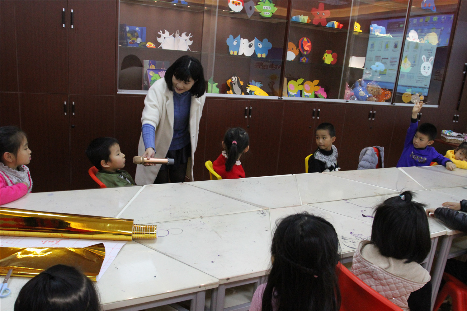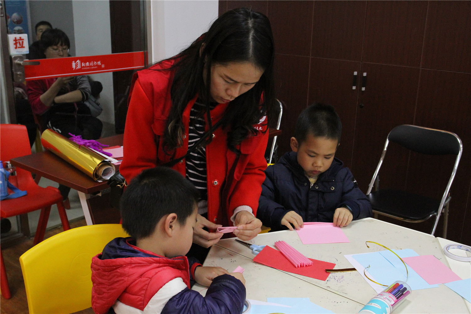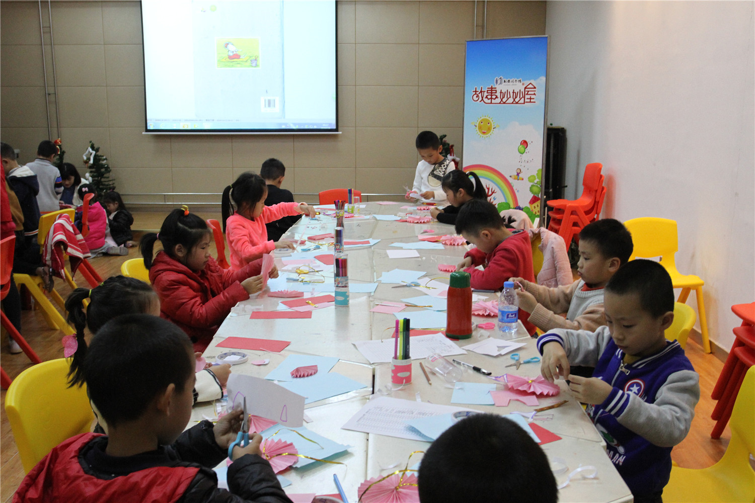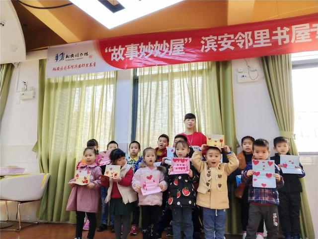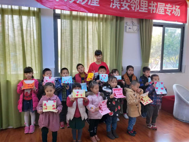 1月6日上午,滨安邻里书屋举办了“故事妙妙屋”活动,老师首先指导小朋友制作了贺卡,之后老师为小朋友们讲述了《爷爷一定有办法》绘本,这本书主要讲了:约瑟的爷爷将毛毯陆续改为:外套、背心、领带、手帕和纽扣,这本书告诉小朋友无论什么东西,它都有存在的价值,我们要充分利用它、爱护它,不要随便丢弃。