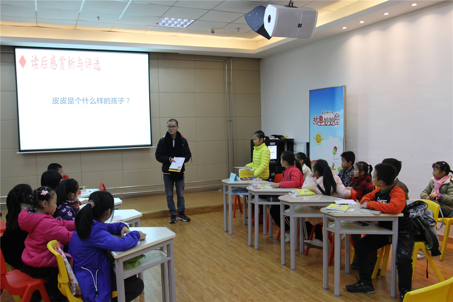在第二天的活动中,老师带领小读者举行了一场“皮皮是个好孩子还是坏孩子?”的辩论赛,让小读者们提前准备,现场分组,选出辩手,进行激烈有序的辩论。辩论赛尾声,老师引导大家思考“我们每个人是否也有像皮皮那样顽皮、撒谎、不文明的时候?是否也有善良、乐于助人、勇敢的时候?”,让小读者们从这此次辩论赛中真正懂得:好孩子身上也会有缺点,坏孩子身上也会有优点,这就是一个真实的人,接受自己或别人身上的缺点,但同时不要忘了去改正缺点,发扬优点!