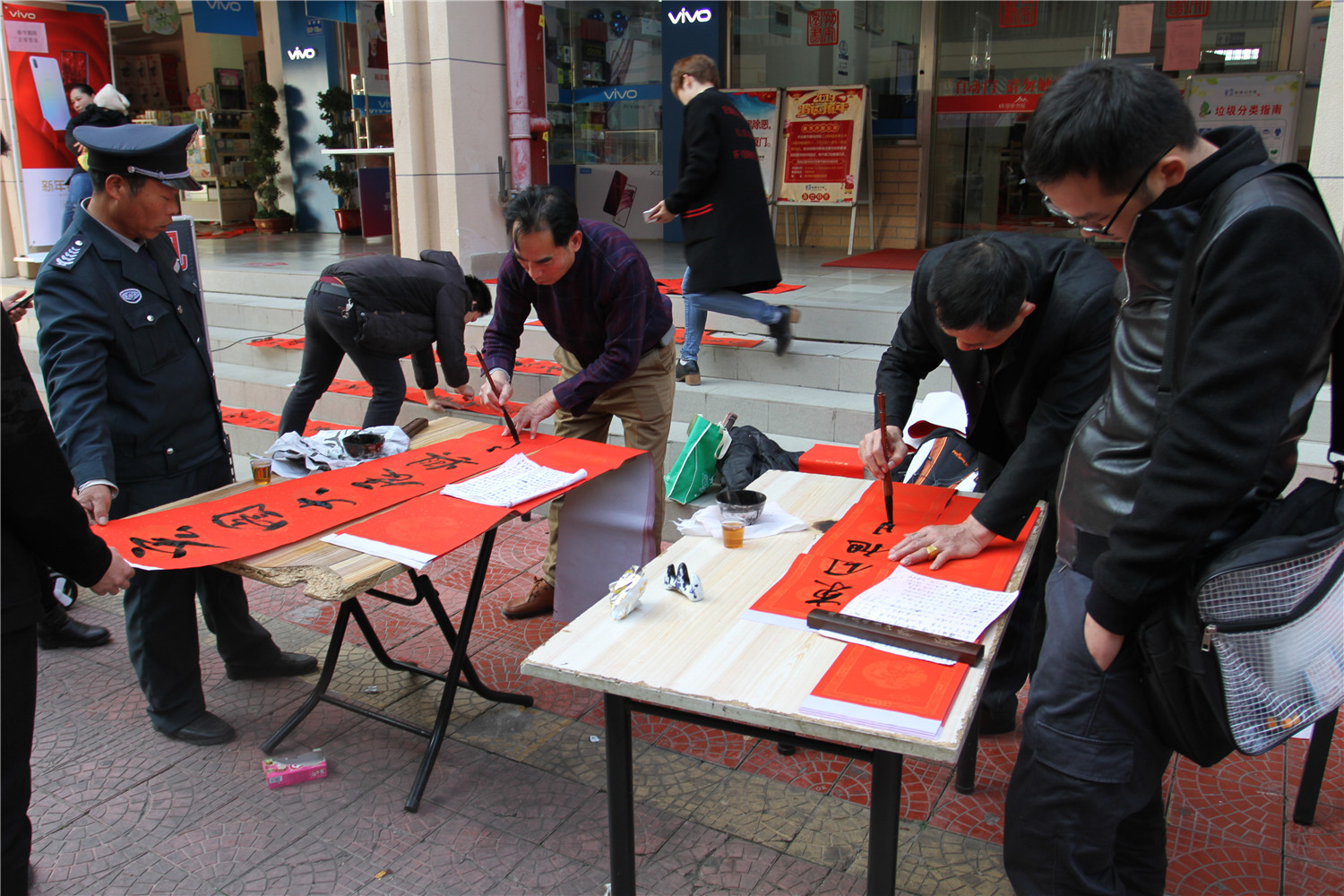 书法家挥毫泼墨,即兴为群众现场书写、赠送春联,一幅幅精美的春联映衬出浓浓的节日气氛,过往群众纷纷驻足,大家热情高涨。现场还举办“书香过大年”之猜灯谜活动,吸引读者热情参与,让广大读者过个充满文化味儿的春节。活动当天,读者办借书还可免费领取hong包和福袋。通过此次活动,让即将到来的春节提前充满了喜庆祥和气氛,为社区群众增添节日的喜庆色彩,也为群众带来了祝福、带来了新春的祝贺。