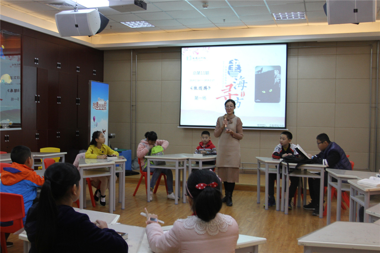 在第一场活动中,为了帮助小读者们了解那个年代,了解蒙古草原,领读老师用丰富的图片和据小说改编的《狼图腾》电影片段来解说这部小说发生的时代和环境背景,让小读者们从全局上对小说有个整体认识。接着,以提问的形式引导大家先了解掌握草原各个物种的生存特点,理清它们之间以及和狼的关系,最后小读者们通过摘记、分享,最终回答出老师的问题——为什么草原人怕狼又敬狼、杀狼又护狼?引出更深的话题——自然法则是什么?