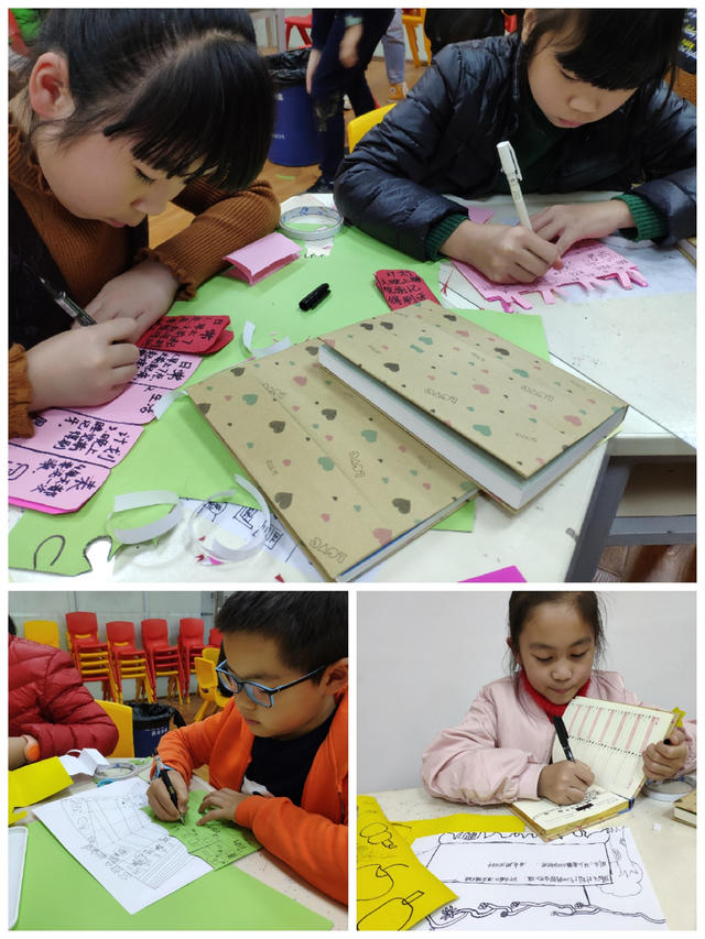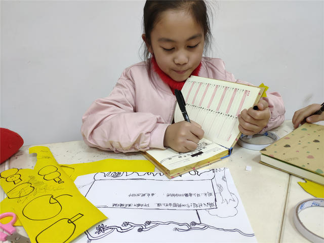 本期“智绘书”活动,香橼老师向小读者们讲述了《和时间赛跑》的课文,并通过《不磨蹭才会效率高》的好书推荐,向他们介绍了如何管理好时间的方法。正值学生开学期间,老师让他们为自己的新学期的小目标拟定一份计划书,同时进行现场指导。手工书制作环节,老师指导小读者们为书本制作书皮,并在书皮制作过程中融入创意手工“智绘书”的元素,让他们体会环保手作的乐趣。