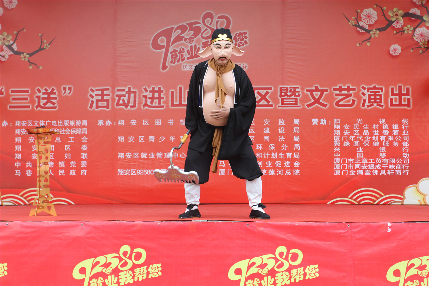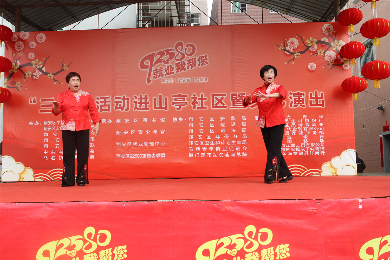 此外,翔安区图书馆还整合了区相关单位,以“92580就业我帮您”为主题,以送文化、送岗位、送服务“三送”为内容,除区图书馆服务活动外,还有大型文艺演出、企业现场招聘,以及区人社局、区总工会、团区委、区妇联、区环保分局、区建设局、区司法局、区卫计局、区安监局以及马巷镇的相关部门在现场摆摊设点向居民提供就业创业优惠政策、垃圾分类、法律知识、扫黑除恶等宣传,并接受现场咨询;主办单位还印发了宣传单2000多份,开设了“扫黑除恶”有奖互动问答;莲花医院开展现场义诊服务;阳光视线、聚缘圆等公司免费为村民验光、配镜、推拿、正骨等。