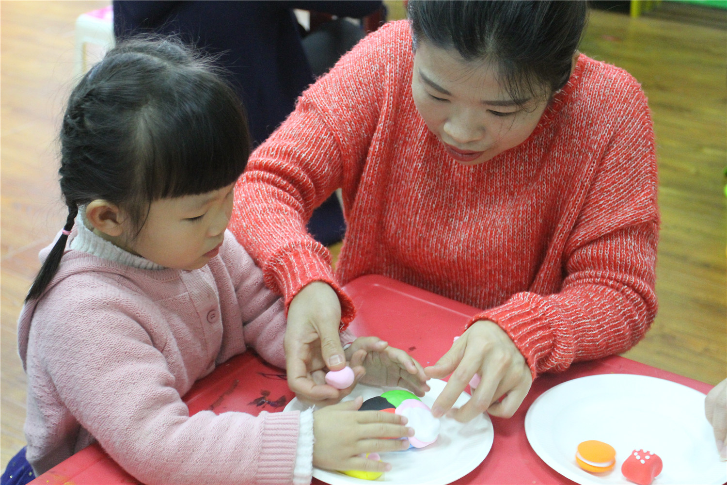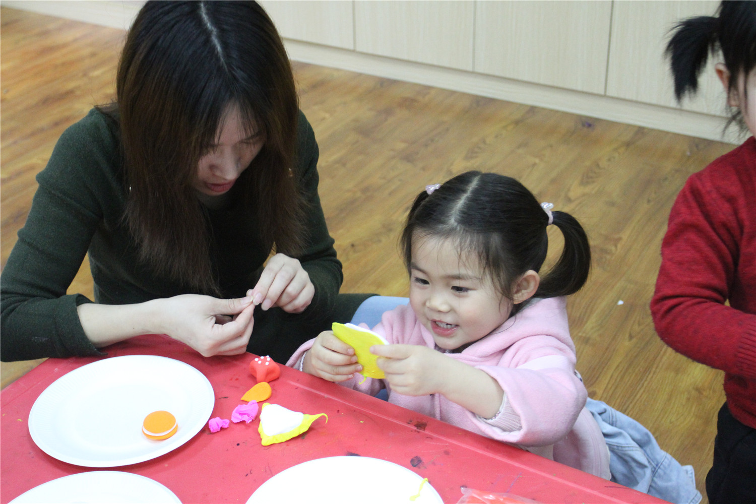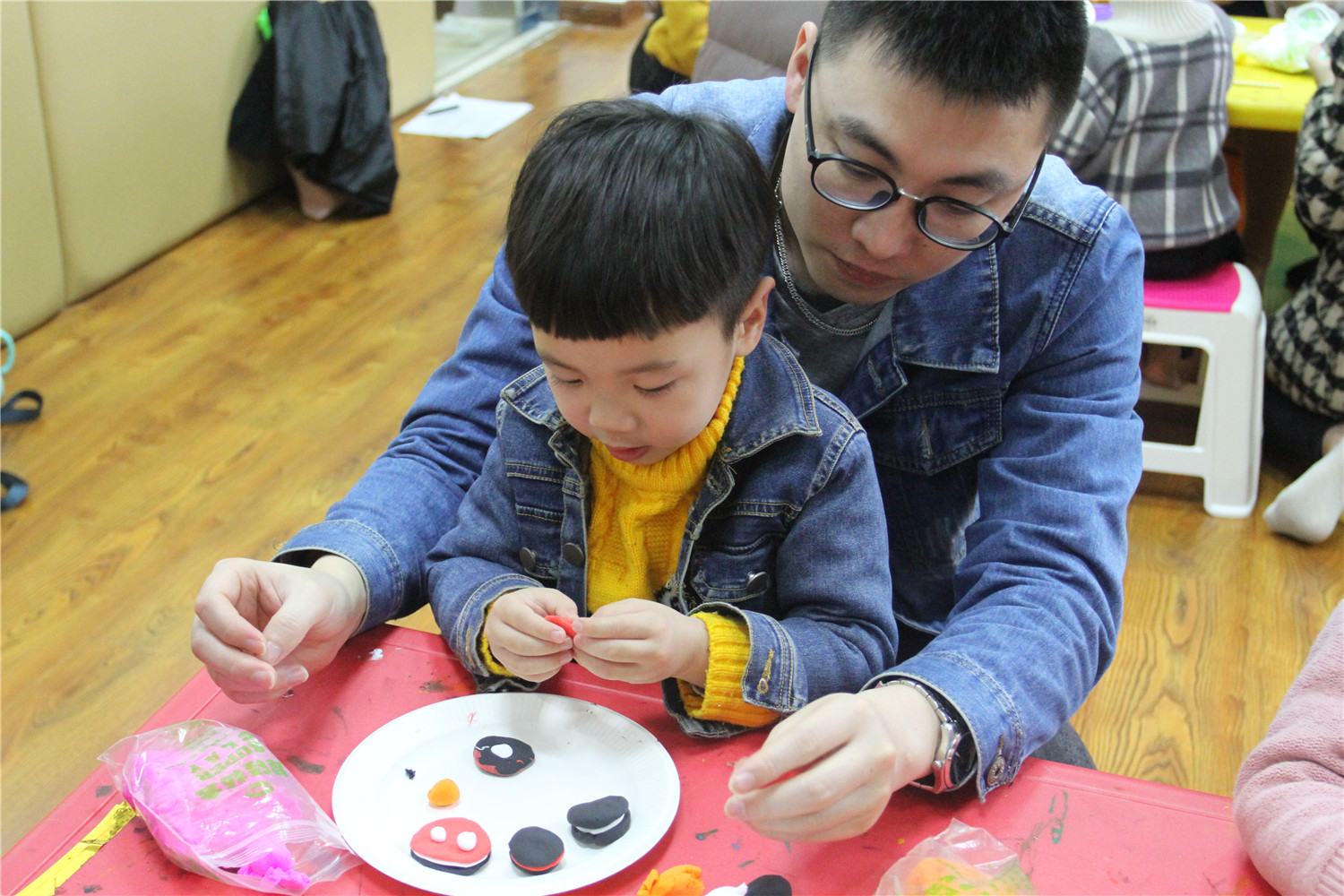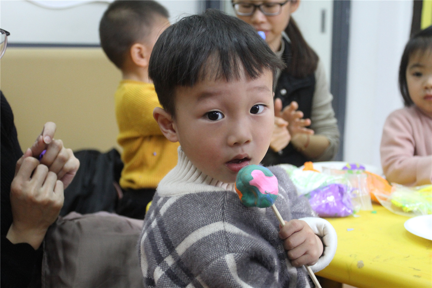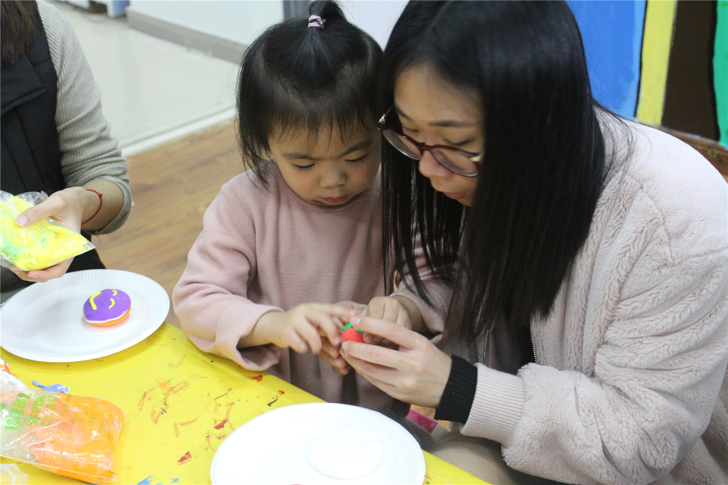 3月3日,翔安区图书馆在一楼低幼阅读体验区举办了“亲子阅读坊”2019年第4期活动。翔安区新店第二中心幼儿园的2名教师志愿者为到场的低幼小读者和家长带来了《是谁咬了我的大饼》的绘本故事, 这是一个有趣的故事,让他们在探索问题的过程中感受阅读的乐趣。绘本故事结束后,老师还指导他们制作超轻黏土手工饼干。活动结束后,老师讲述了各式各样的绘本,并与家长交流,指导亲子阅读。