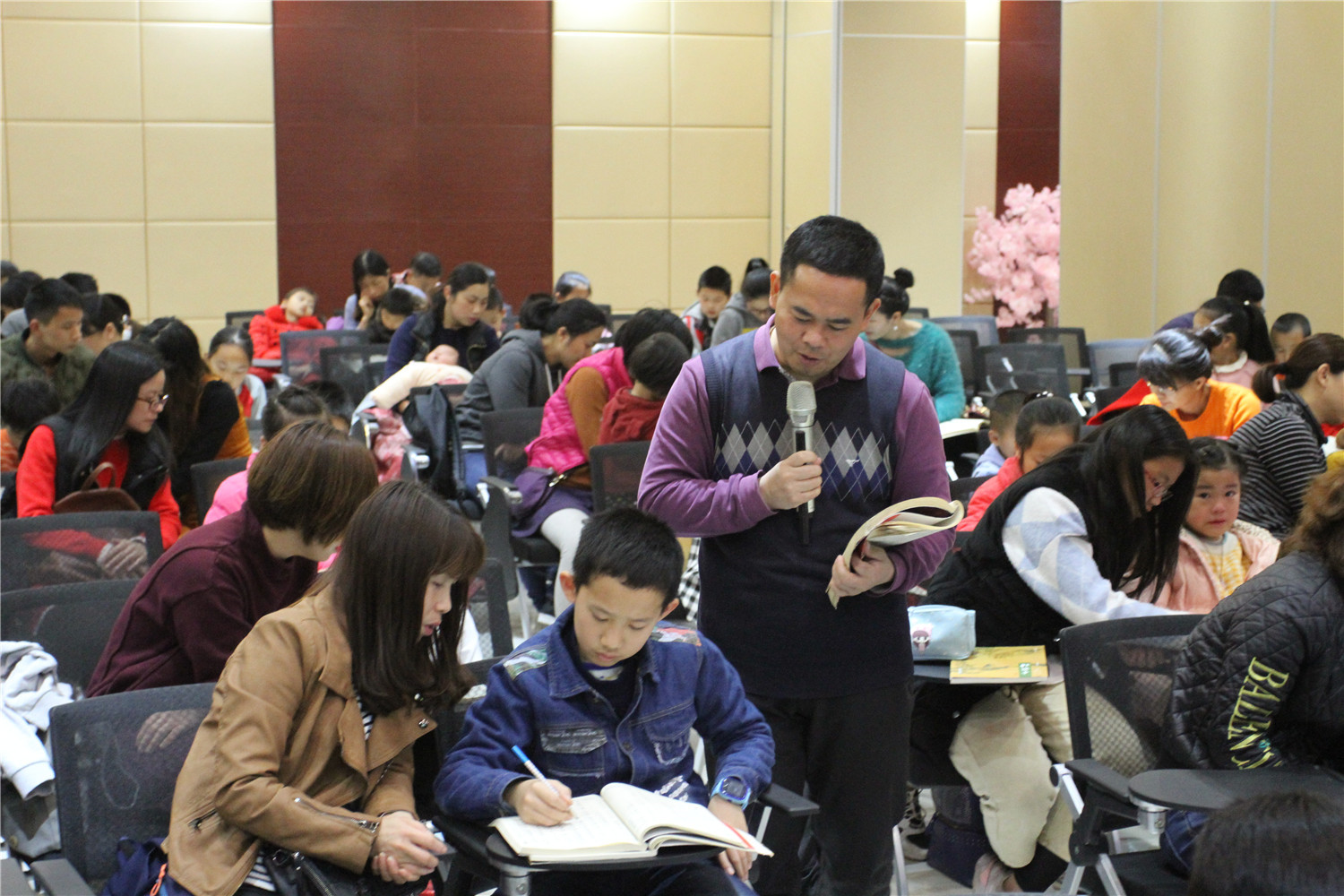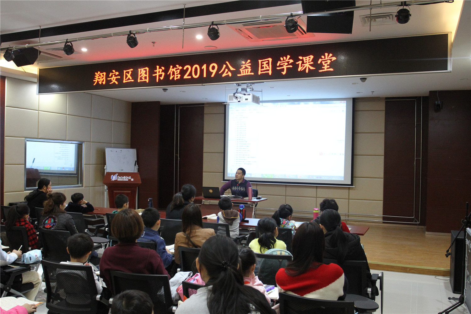 3月16日上午,公益国学课堂2019年第3期活动在翔安区图书馆报告厅举办,现场座无虚席。本次活动由翔安区义雅书院院长力禾老师主持,他作了“塞翁失马”典故的的德能讲座分享,并他指导在座亲子家庭的读者诵读《论语宪问十四》、《千家诗》等国学经典。课堂上有分享、有讨论、有答惑,由浅入深,亲子共学,既诵读经典、学习圣贤的智慧,又在德能分享活动中帮助读者树立正确的知见。