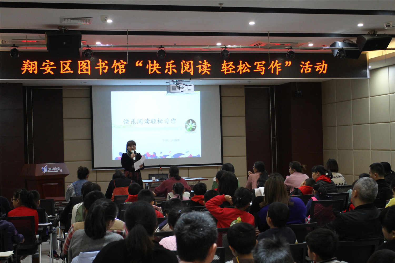 3月16日上午,翔安区图书馆邀请优秀语文教师林淑彬在报告厅举办“快乐阅读 轻松习作”首期活动,现场座无虚席。课堂上老师向小读者们和家长们详细阐述了“为什么学作文”、“三——五要素基础句型”等写作知识,同时让他们现场练习。老师还向他们推荐了《落叶跳舞》、《要是你给老鼠吃饼干》等阅读书目,并指导阅读。