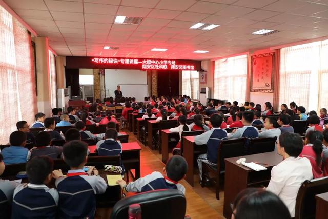 次活动学校共组织了四、五年级的同学及相关语文老师120余名,济济一堂,聆听许老师的讲座。许老师用幽默的语言、丰富的学识、生动的例子,讲述了写作的秘诀,打开了大家的心灵格局,现场高潮迭起。讲座上,除了有许老师的生动讲解,还安排了让在场同学讨论、交流,师生互动环节更是引来了大家的阵阵欢笑。讲座中同学们情绪高涨,发言踊跃。活动现场不时地爆发出一阵阵雷鸣般的掌声,起初羞涩和被动的孩子们也渐渐融入了愉快的互动当中,那一张张兴奋的脸庞、高高举起的小手、一个个精彩的互动让整个下午的阳光灿烂无比。