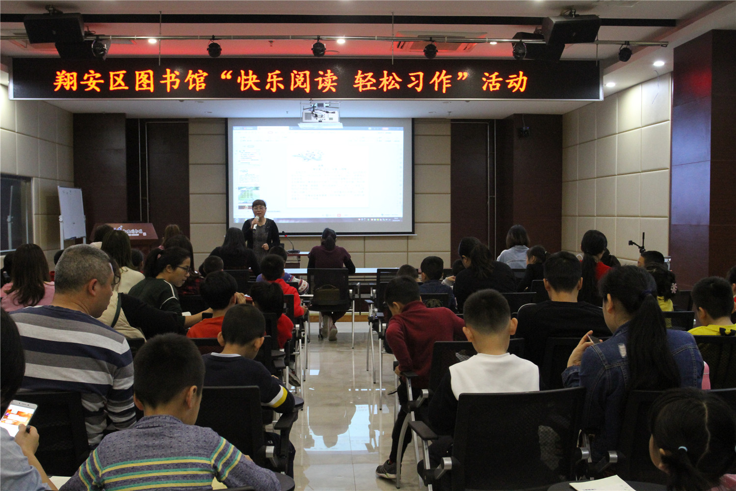 翔安区图书馆于每周六上午10:00-11:40举办“快乐阅读 轻松习作”活动,分低、中、高三个年段进行集中辅导训练,组织小读者和家长一起体验阅读与写作的乐趣。活动中,老师结合小学课文范文、学生习作片断、教育部推荐小学必读书目,分析归纳写作技巧,由浅入深、循序渐进地诱导小学生通过借鉴范文,掌握拟题、选材、结构、立意、语言表达等常用的写作基础知识技能,启迪逻辑思维,形成模版,经过自身的理解、吸收,结合生活实际进行习作,帮助小学生快乐阅读和轻松提高写作水平。