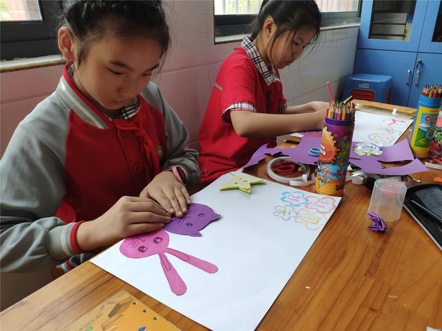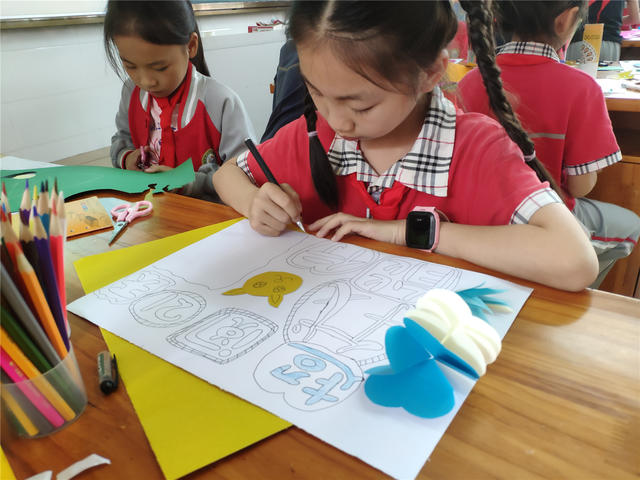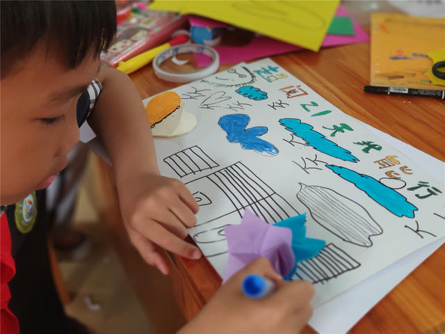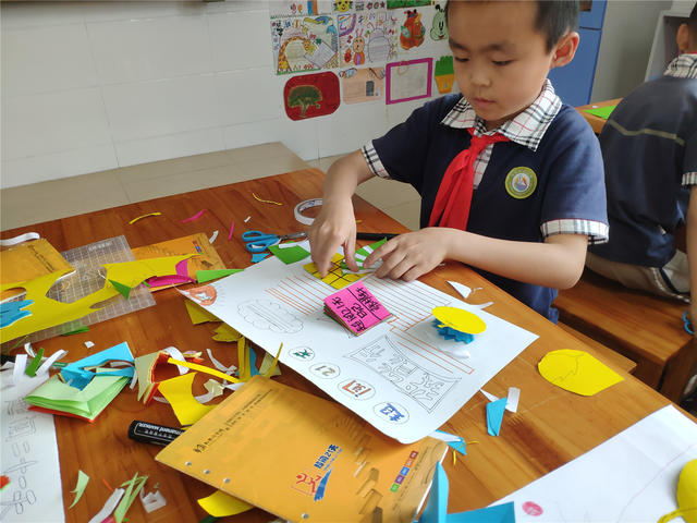 香橼老师向同学们讲述了《如何做一本书》的绘本故事,作家写故事,画象画插画,美术搭配文图,文字编辑检查语法……让他们了解一本书,凝结了很多人的心血和智慧。手工书制作环节,老师指导他们亲手制作手工书,让他们做小作家、小画家,将智绘书结合“超阅21天”阅读笔记制作成手抄报。