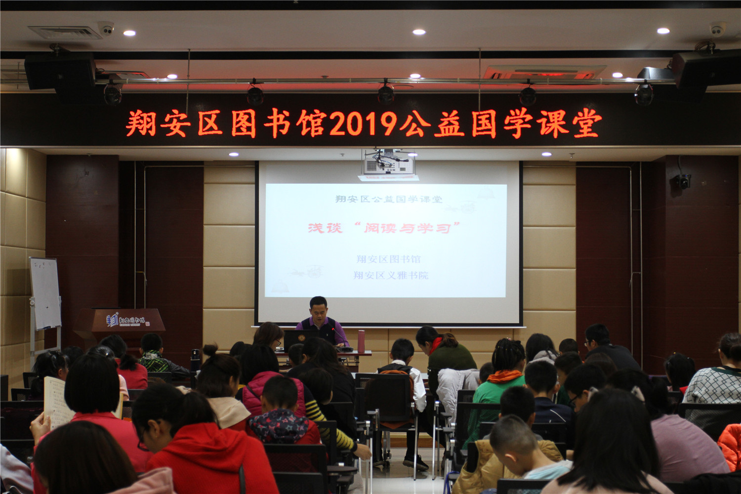 为响应读者们学习国学的热情,2019年,翔安区图书馆继续联合义雅书院于每周六上午8:30—10:00举办公益国学课堂,同时每月举办一场全天的专场活动,组织小读者和家长一起体验“国学”,紧扣“国学诵读经典”的主旨,辅以德能主题课,在引导亲子共读经典的同时,提升对经典的认识、开拓德能教育的思维。
