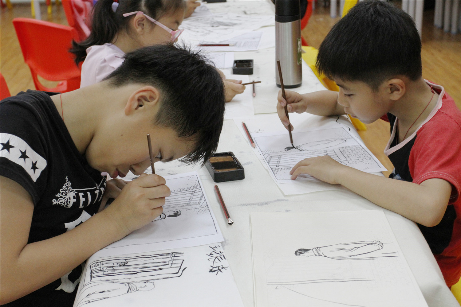 “翔安红色记忆”系列连环画编委、白描画家杨志龙结合“翔安红色记忆”系列连环画内容,教导小读者白描绘画,通过白描作品鉴赏、握笔技巧、小读者作品指导等,宣传普及白描中国传统绘画技艺,培育小读者爱国爱乡情怀,用作品表达对祖国建国70周年的美好祝愿。