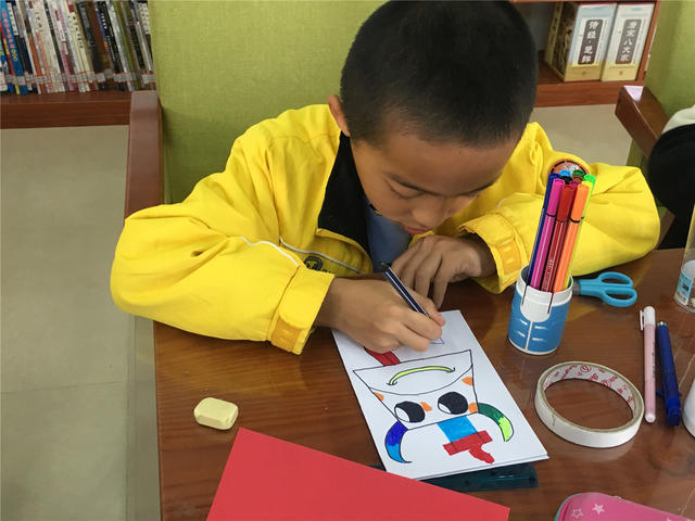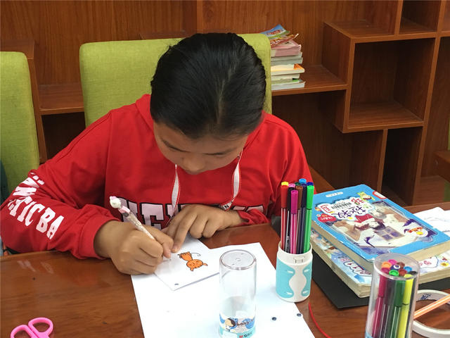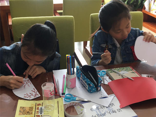 以“什么是读书沙龙会”主题形式进行简单、轻松、愉快的交流方式,图书馆管理员用幽默诙谐的语言解释“沙龙”一词的由来,现场气氛活跃。愉快交流过后,图书馆管理员让学生们制作手工书签,学生们开发脑力想象,创造出一张张美丽的诗签。