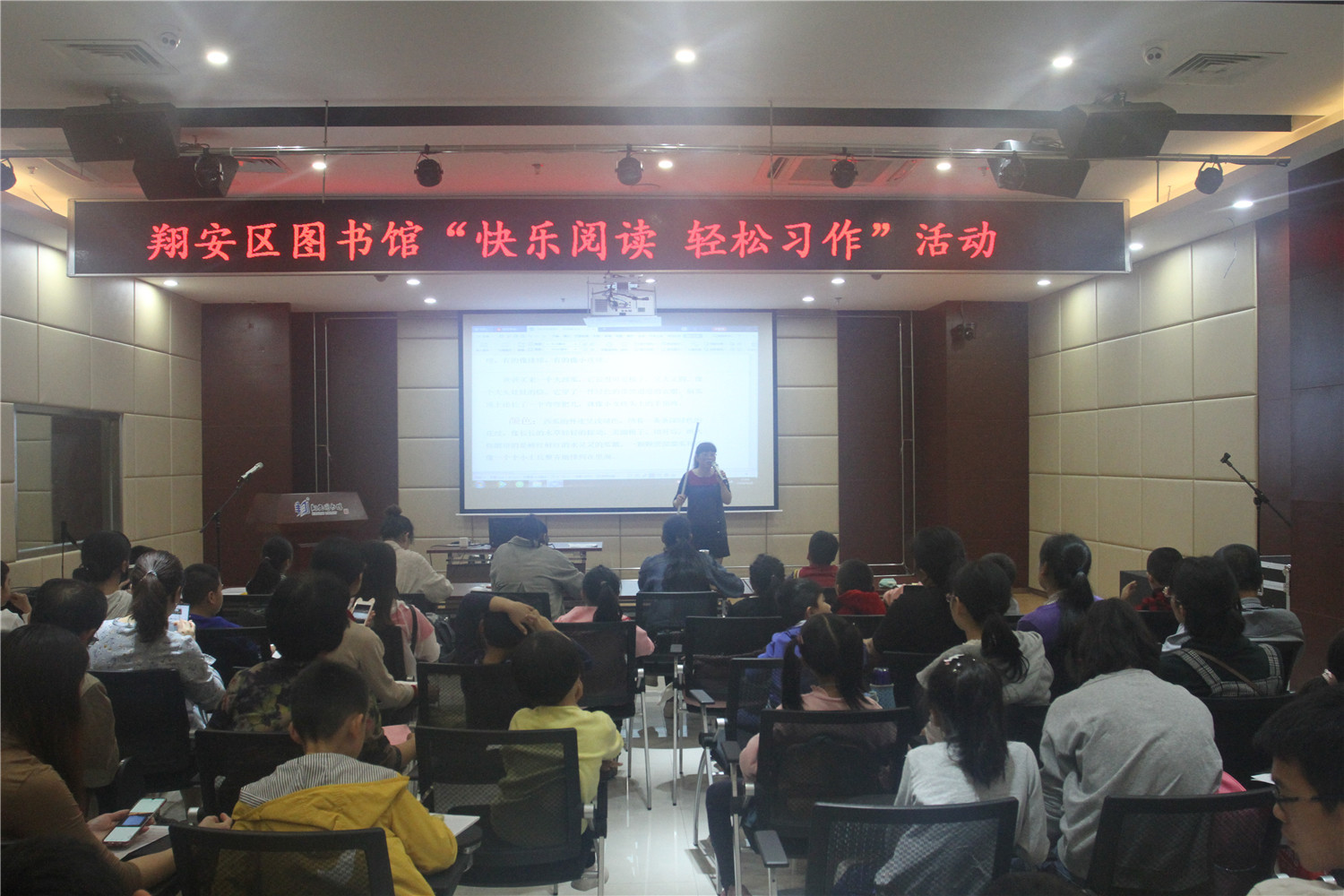 4月20日上午,翔安区图书馆邀请优秀语文教师林淑彬在报告厅举办“快乐阅读 轻松习作”第5期活动,现场座无虚席。课堂上老师向小读者们和家长们巩固了之前所学的写作知识,同时让他们现场练习。老师还向他们推荐了《小熊和最好的爸爸》、《我妈妈》等阅读书目,并指导阅读。