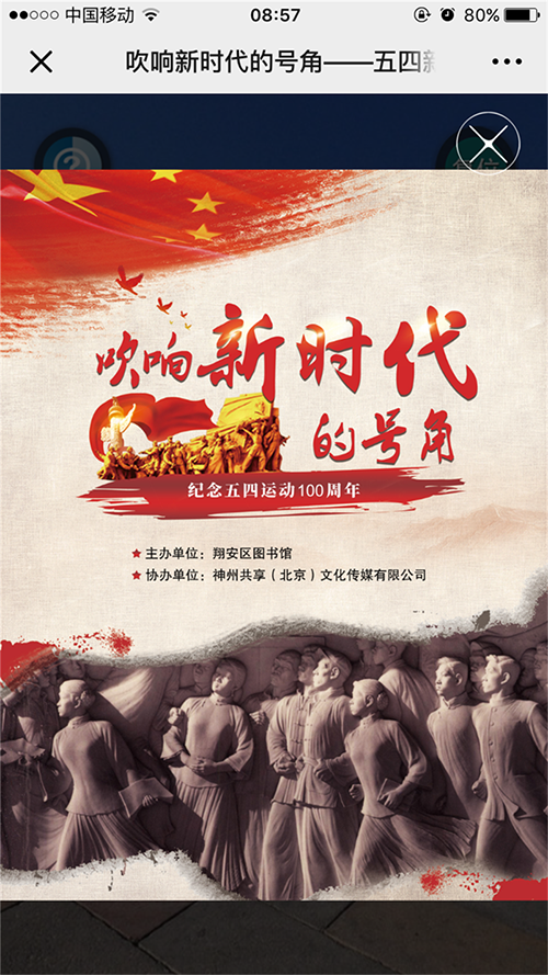 除此之外,翔安区图书馆还在微信公众平台进行《吹响新时代的号角—纪念五四运动100周年》3D有声展览,用更详实的解说和清晰的图片,实现读者的线上观展。
