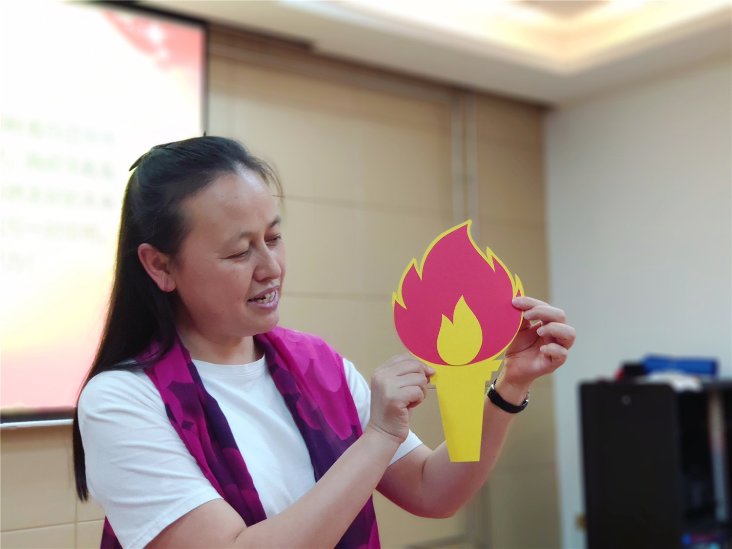本期“智绘书”活动,香橼老师首先向介绍了五四青年节的由来及“中国青年五四奖章”获得者次仁曲巴的事迹,指导他们写亲笔书信。老师还为他们讲述《我有一封给您的信》的绘本故事,让他们对未来青年时期的自己写一封信。手工书制作环节,老师指导他们制作象征青年的五四“火炬智绘书”。除此之外,老师还带领他们参观了《吹响新时代的号角—纪念五四运动100周年》主题展以及《五四精神》图片展,并进行了讲解。