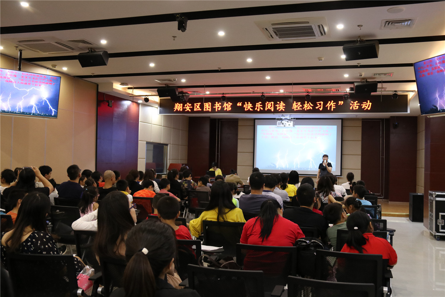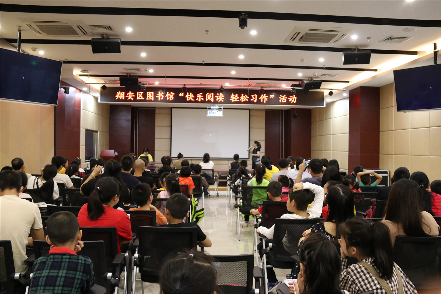 5月11日上午,翔安区图书馆邀请优秀语文教师林淑彬在报告厅举办“快乐阅读 轻松习作”第5期活动,现场座无虚席。课堂上老师向小读者们和家长们教授了写作知识,同时让他们现场练习。老师还向他们推荐了《有萝卜种子》《蚯蚓的日记》等阅读书目,并指导阅读。