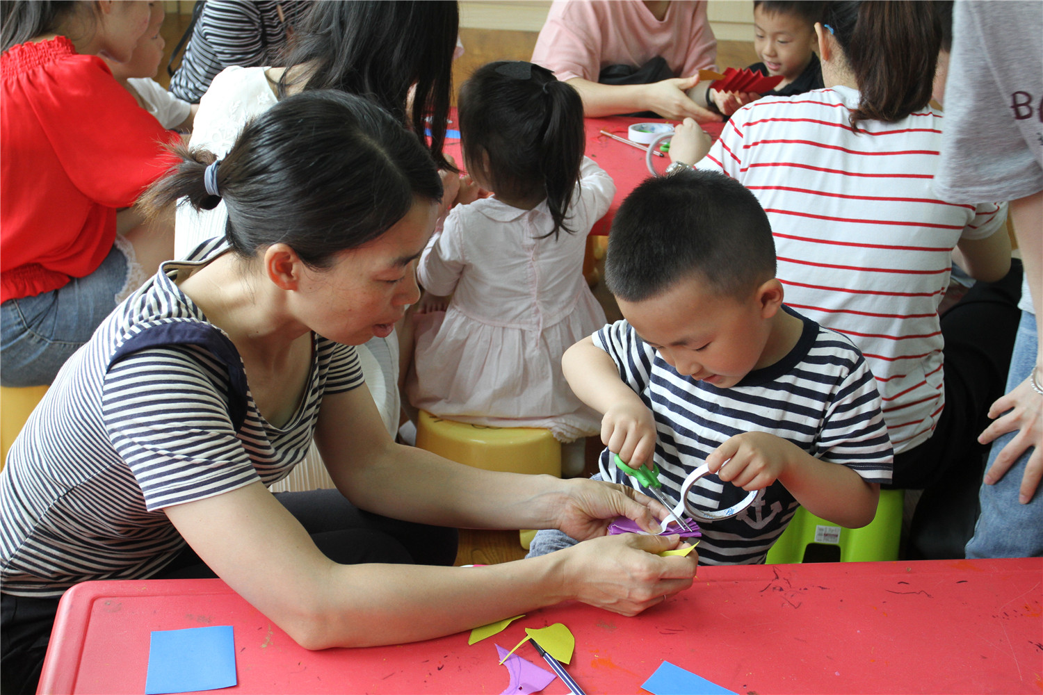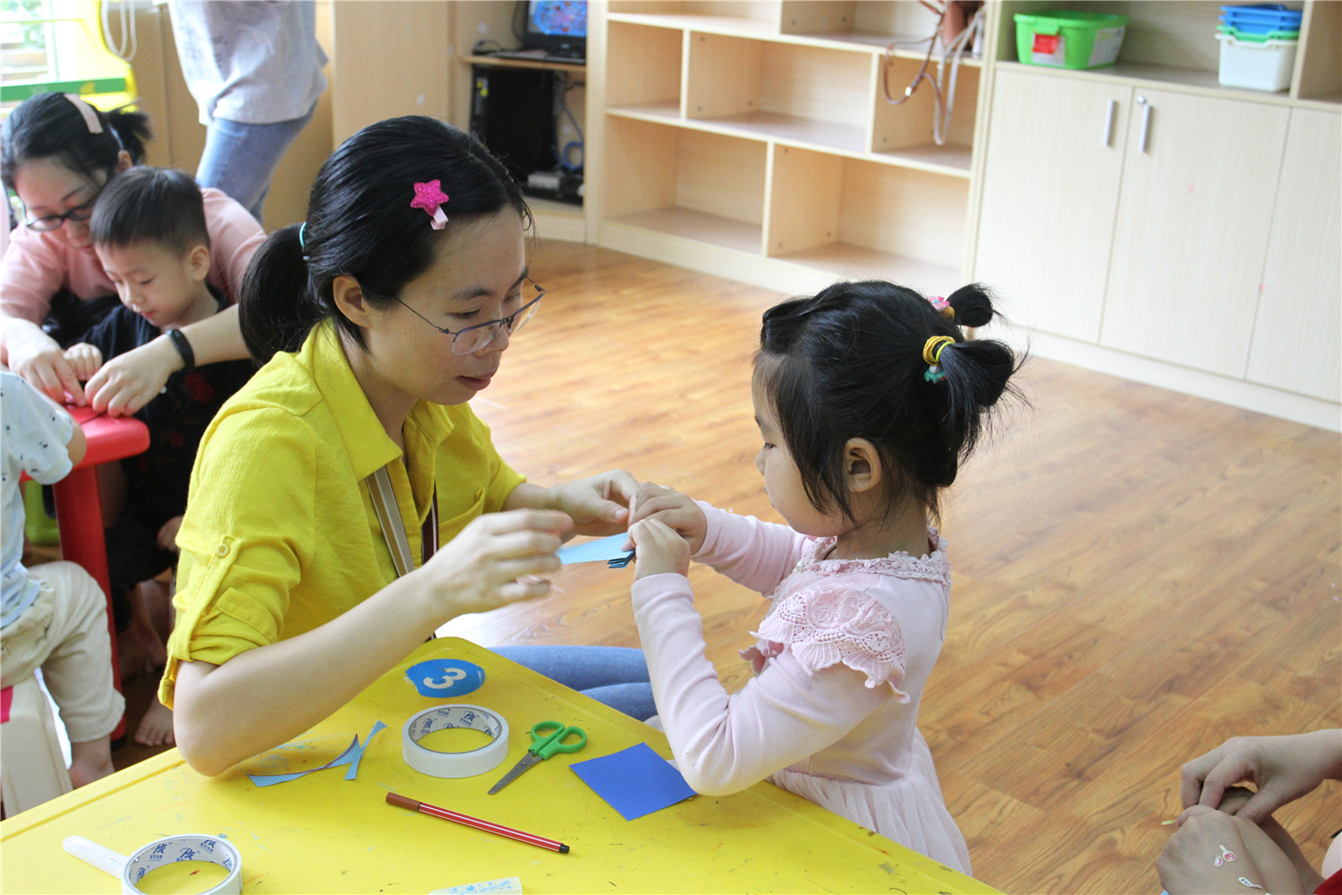 5月26日,翔安区图书馆在一楼低幼阅读体验区举办了“亲子阅读坊”2019年第9期活动。翔安区新店第二中心幼儿园的2名教师志愿者为到场的低幼小读者和家长带来了《我是一条快乐的鱼》的绘本故事,通过充满创意与想象的认知绘本,让他们了解各种各样的鱼。绘本故事结束后,老师还指导他们用卡纸制作会“游动”的小鱼。活动结束后,老师讲述了各式各样的绘本,并与家长交流,指导亲子阅读。