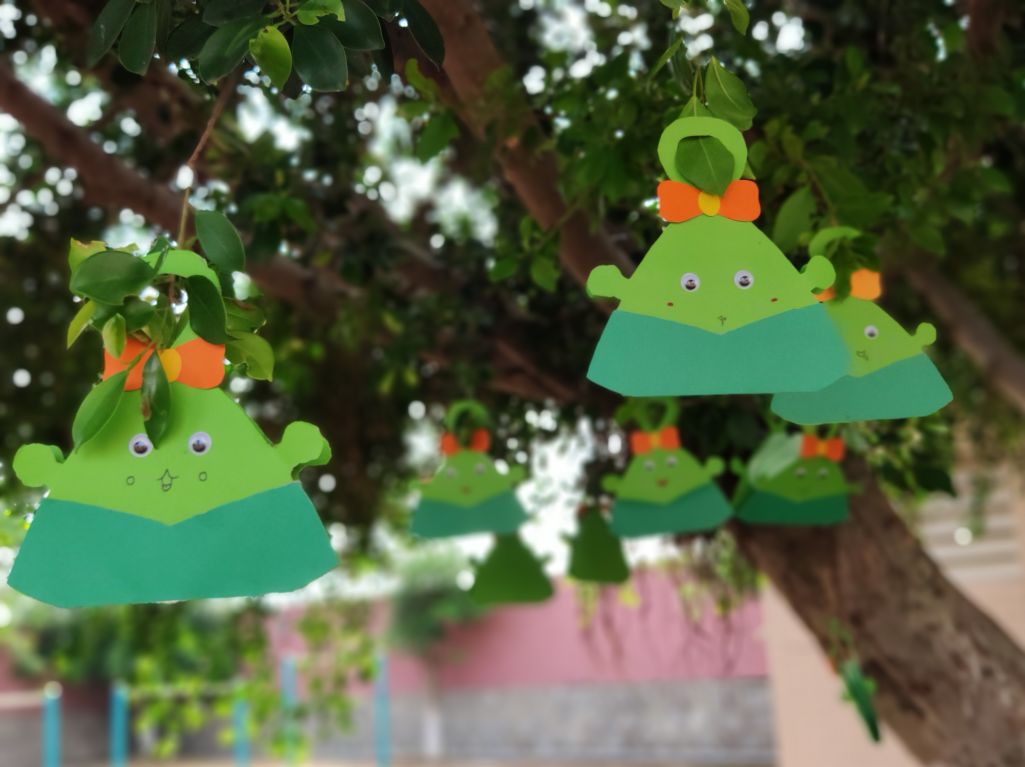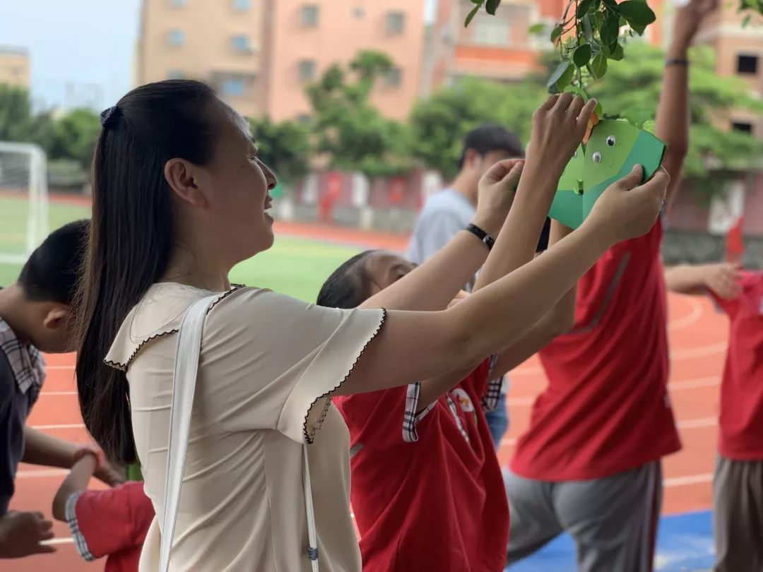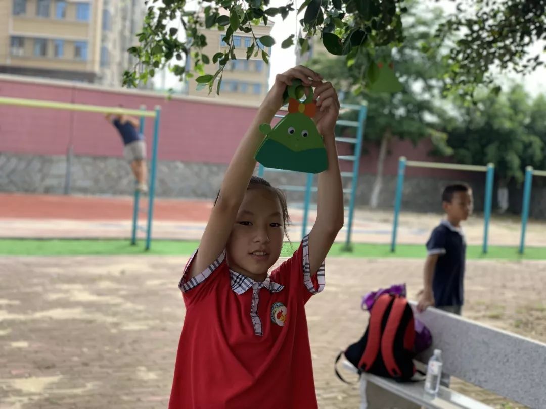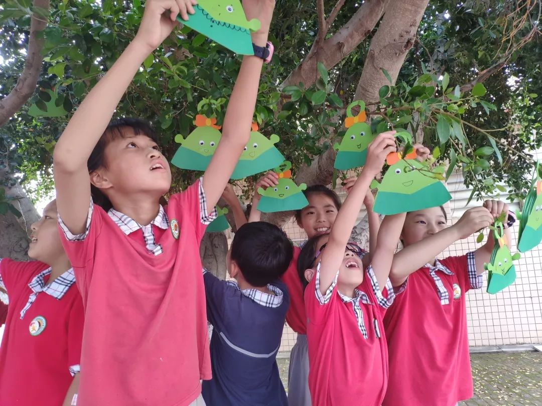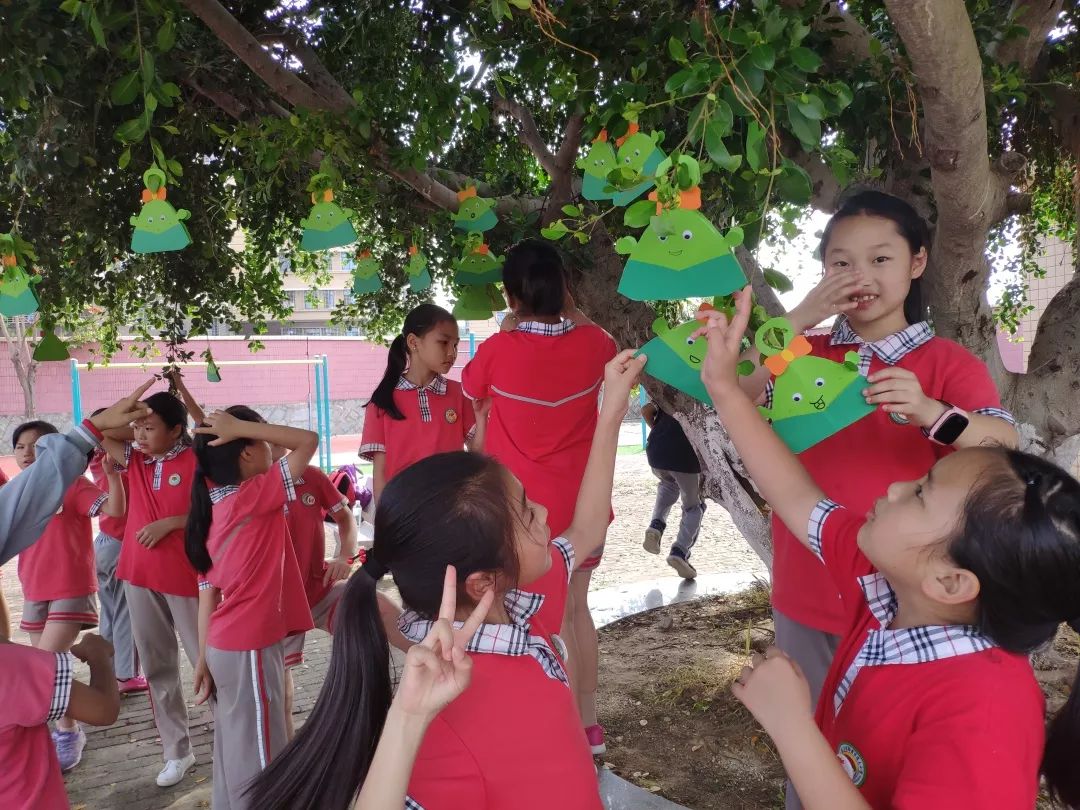 孩子们来到操场,把“粽子书”挂在树枝上,这颗长满“粽子”的大树,成为了校园里一道别致幸福的风景。