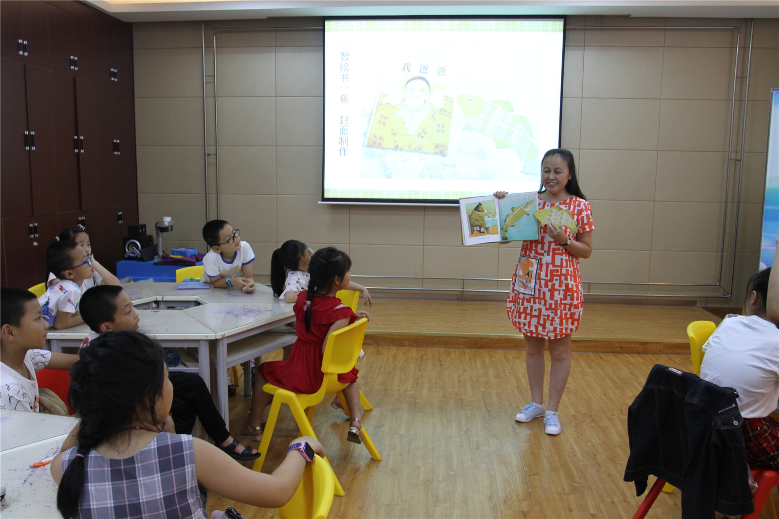 本期“智绘书”活动,香橼老师首先向小读者们提了几点作文日积月累的建议,教他们考试作文的复习小窍门以及要点和注意事项。时值父亲节,老师还为他们讲述绘本《我爸爸》,并分年龄段让他们进行阅读《现代爸爸》写读后感及命题作文《我的爸爸》的写作。在手工书制作环节,让他们以绘本中的爸爸鱼形象制作“智绘书”。