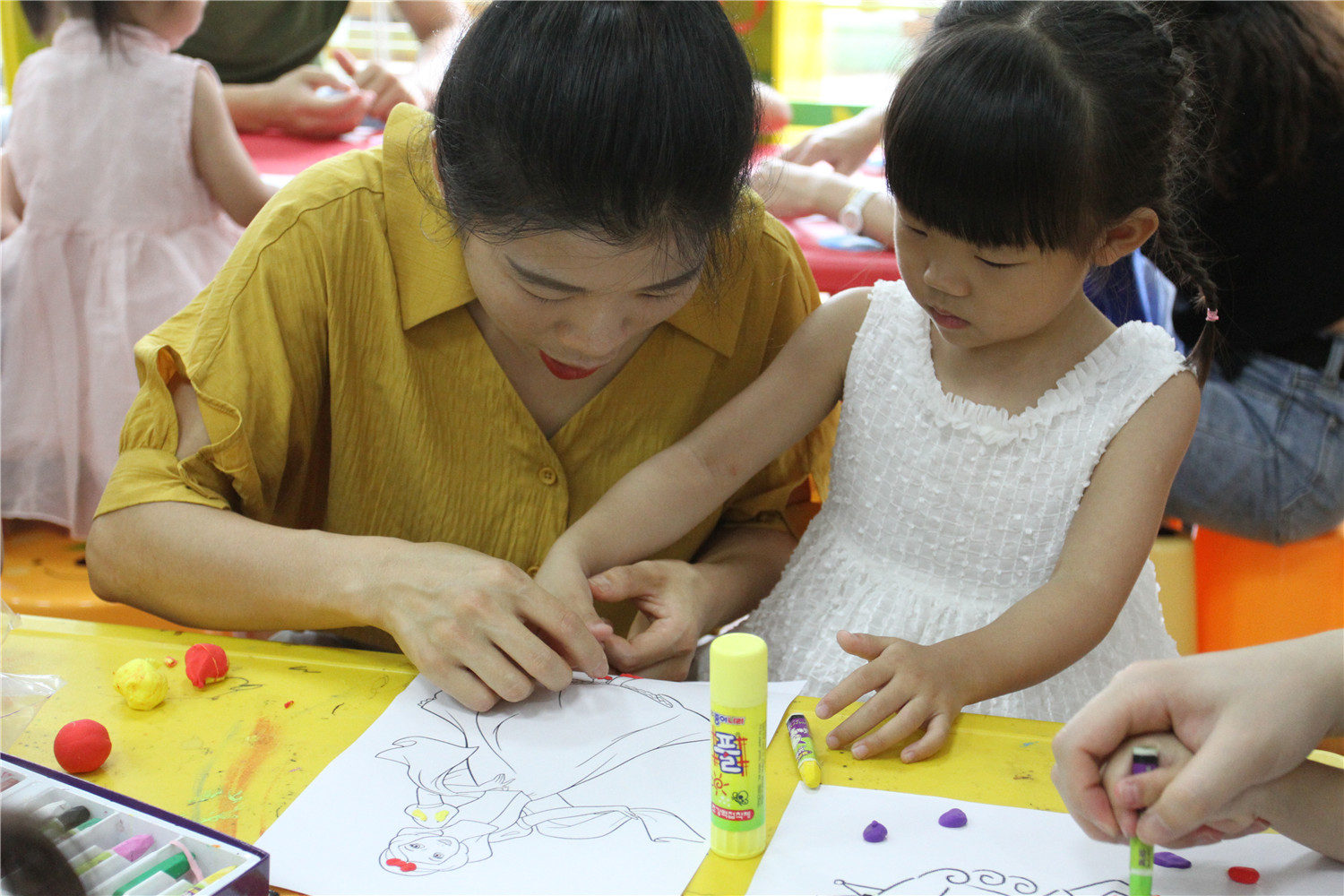 6月23日,翔安区图书馆在一楼低幼阅读体验区举办了“亲子阅读坊”2019年第11场活动。翔安区新店第二中心幼儿园的2名教师志愿者为到场的低幼小读者和家长带来了《神奇的色彩女王》的绘本故事,通过绘本,让他们了解各种色彩蕴藏的含义,给他们提供了一个别具新意的颜色教程。绘本故事结束后,老师还指导他们为色彩女王装扮服装。活动结束后,老师讲述了各式各样的绘本,并与家长交流,指导亲子阅读。