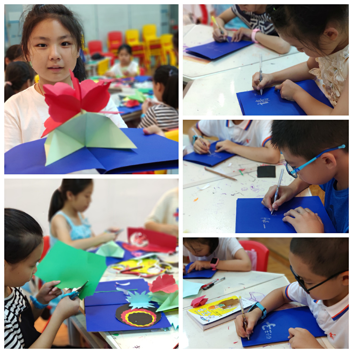 本期“智绘书”活动,香橼老师首先向小读者们介绍了应用文的种类和写作要求,老师还为他们科普“黑洞”知识以及让他们观赏经典电影《小王子》,并让他们用一种应用文,给小王子写一封信、发一份邀请函,续写《小王子》故事。在手工书制作环节,让他们制作有趣的立体“黑洞书”。