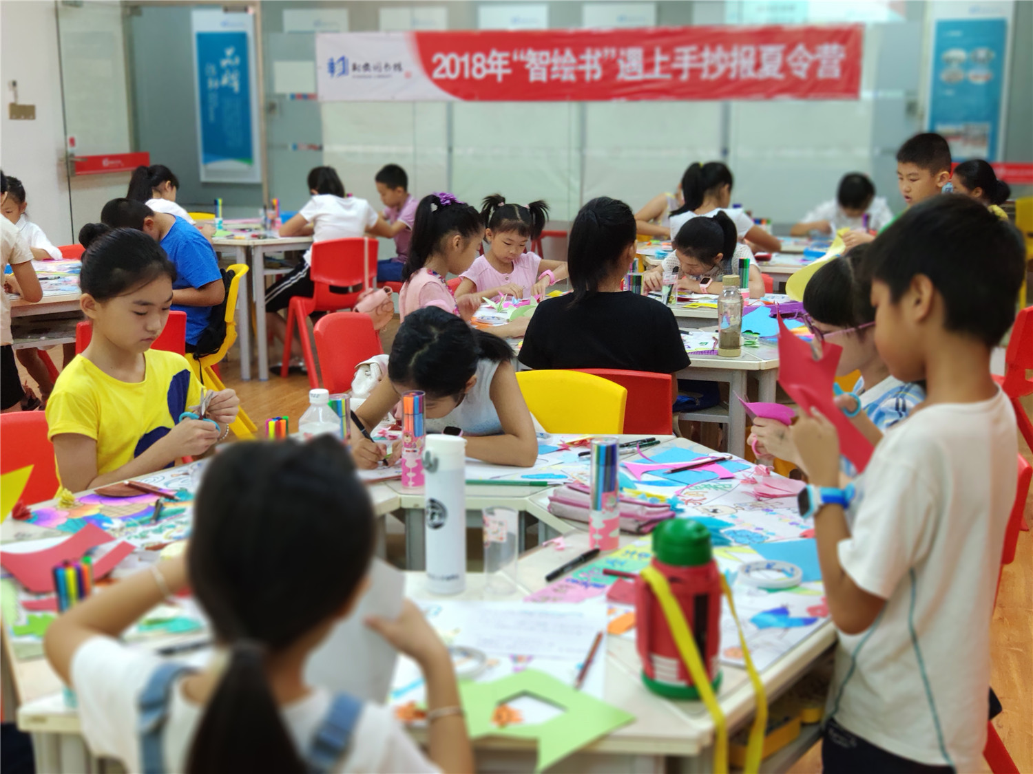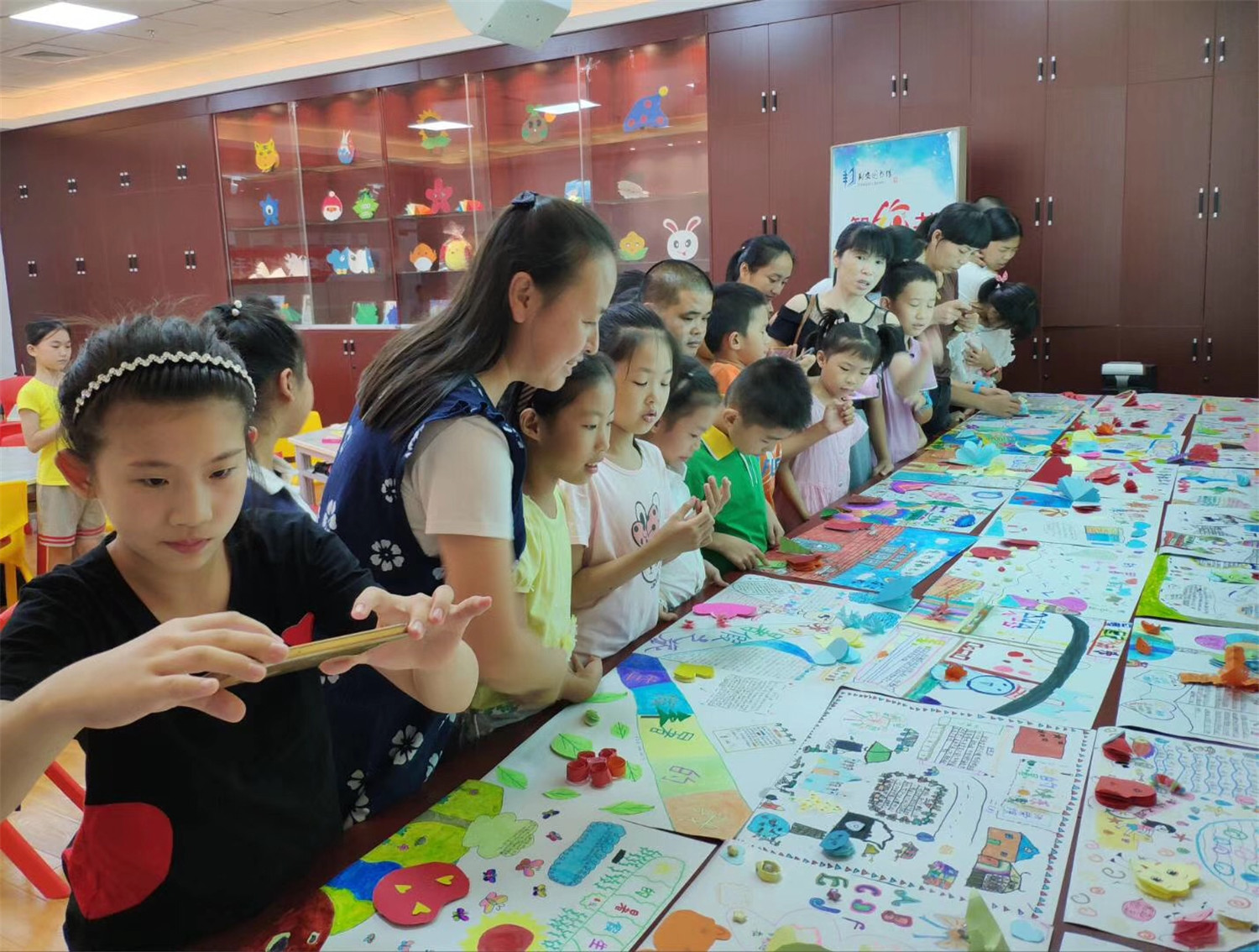 “智绘书”活动是针对9至12周岁读者开设的一个集阅读指导、能力锻炼、美德教育的创意课堂。围绕特定主题,以手工书DIY制作为主线,通过教师传授知识、图书推介、阅读指导,引导小读者依托图书馆查找和收集、整理材料,发挥各自的聪明才智,编写故事、设计插图、剪裁制作造型各异、五颜六色的立体手工书,培养小读者的创新、写作、绘画、编辑、美工及沟通交流、协作、动手等能力。自2015年开办至今,已举办100场,“智绘书”今天将举行百期庆典,集中展示活动成果。