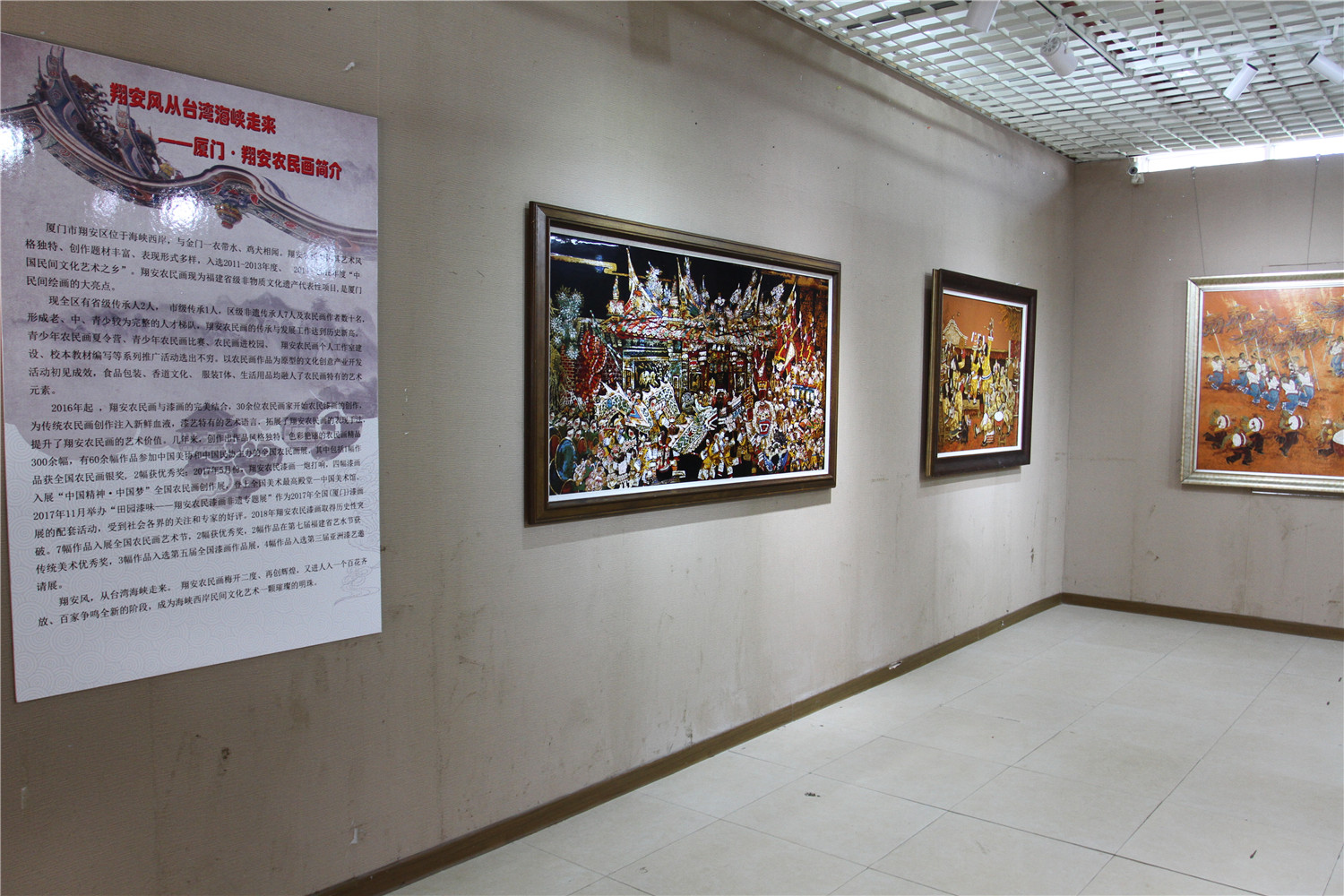 本次展览展出了近年来优秀农民漆画作品50余幅,集中展示了翔安农民漆画的最新成果,作品具有强烈地域特色,创作题材大部分以厦门及闽南的非遗项目和民风民俗为主,创作群体为翔安农民画家,他们以漆为媒,以其纯真、质朴的表现形式,用大漆独有的艺术语言表达心中之美,成为翔安本土艺术中一道靓丽的风景。