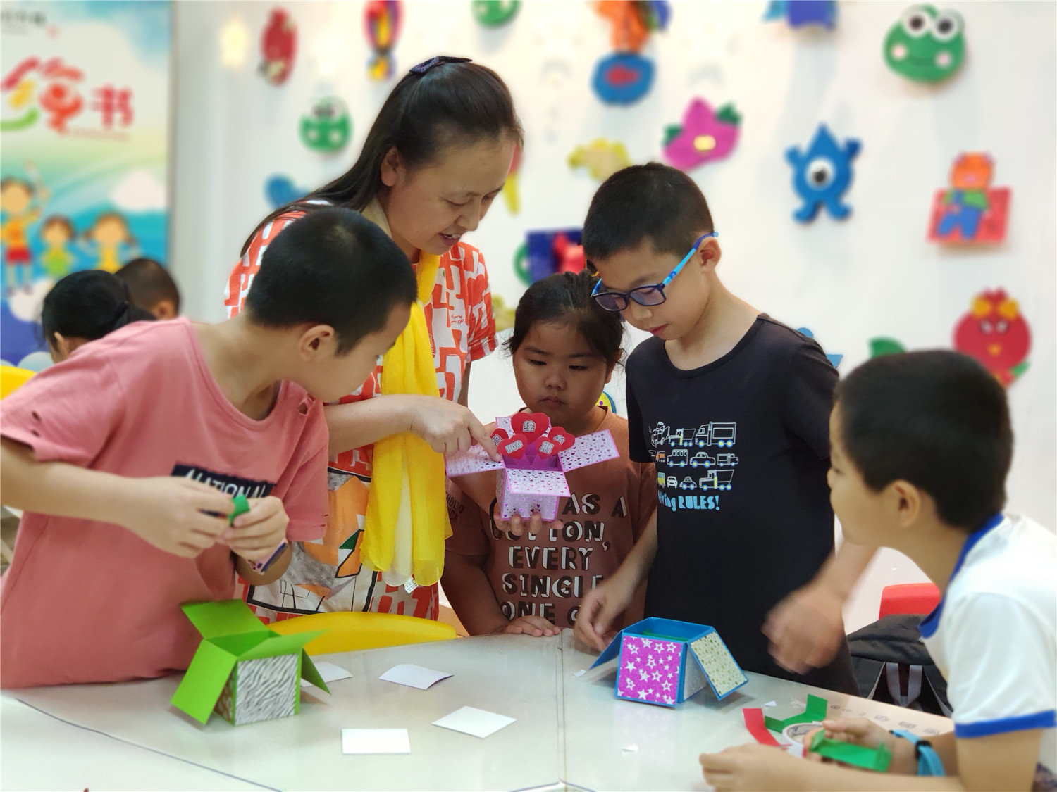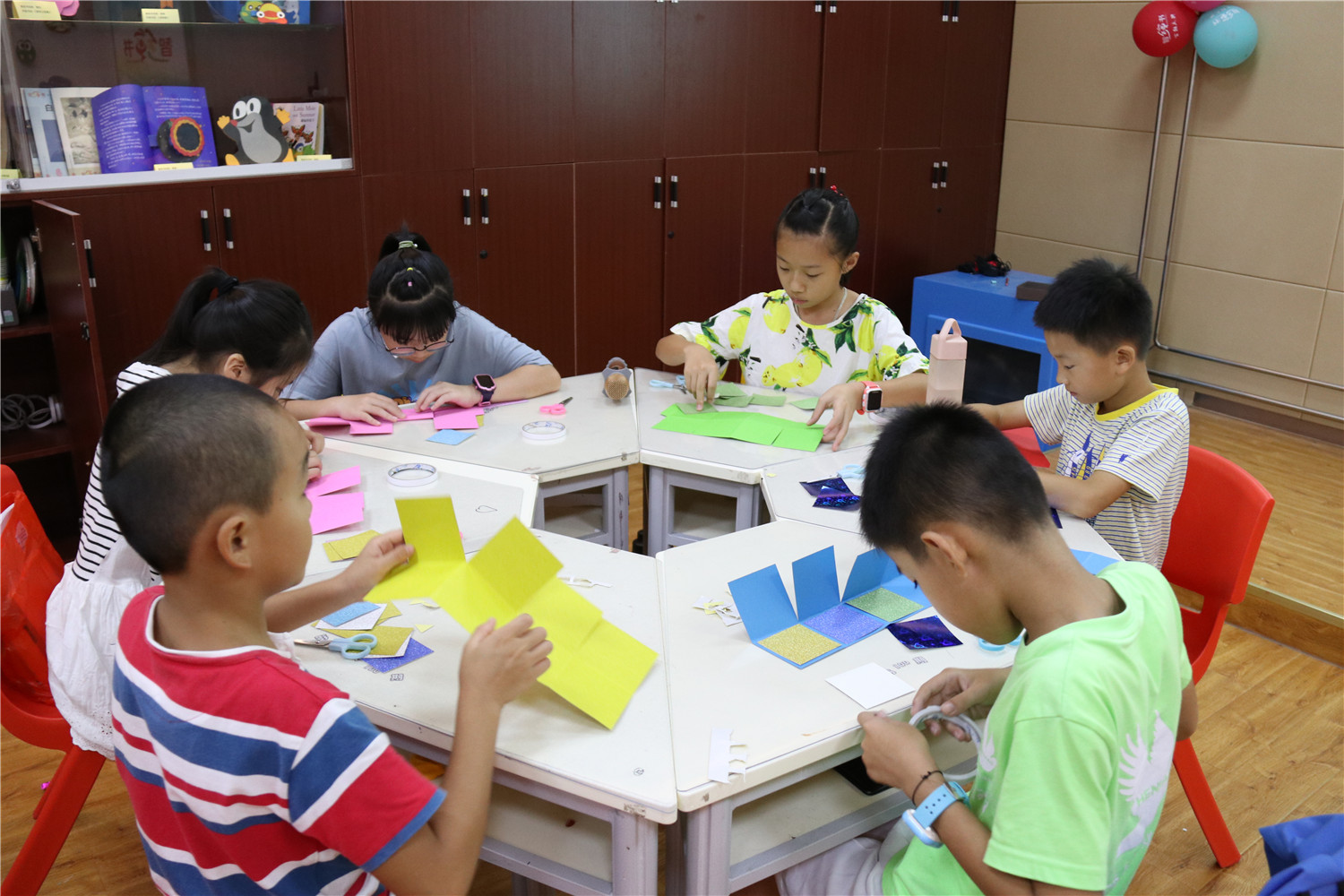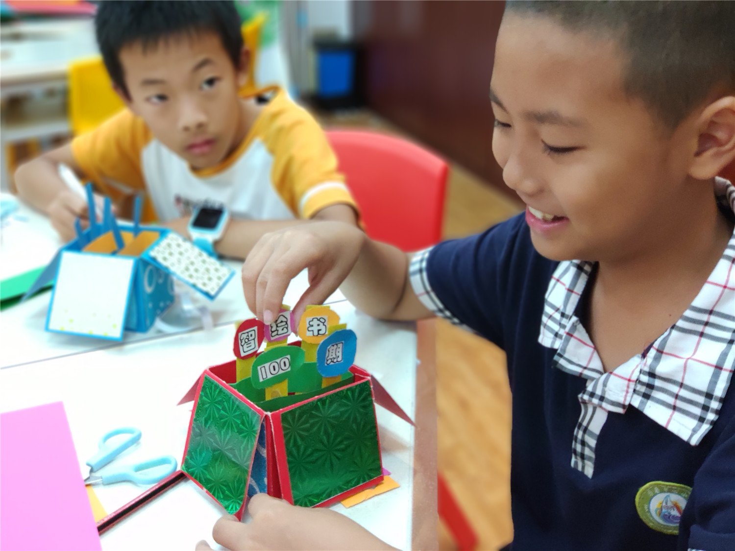 “智绘书”活动自2015年开办至今,已举办100场,是针对9至12周岁读者开设的一个集阅读指导、能力锻炼、美德教育的创意课堂。围绕特定主题,以手工书DIY制作为主线,通过教师传授知识、图书推介、阅读指导,引导小读者依托图书馆查找和收集、整理材料,发挥各自的聪明才智,编写故事、设计插图、剪裁制作造型各异、五颜六色的立体手工书,培养小读者的创新、写作、绘画、编辑、美工及沟通交流、协作、动手等能力。