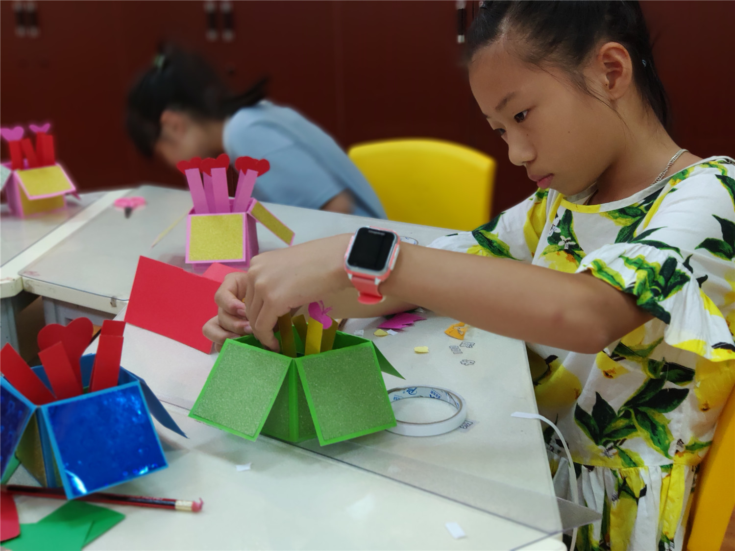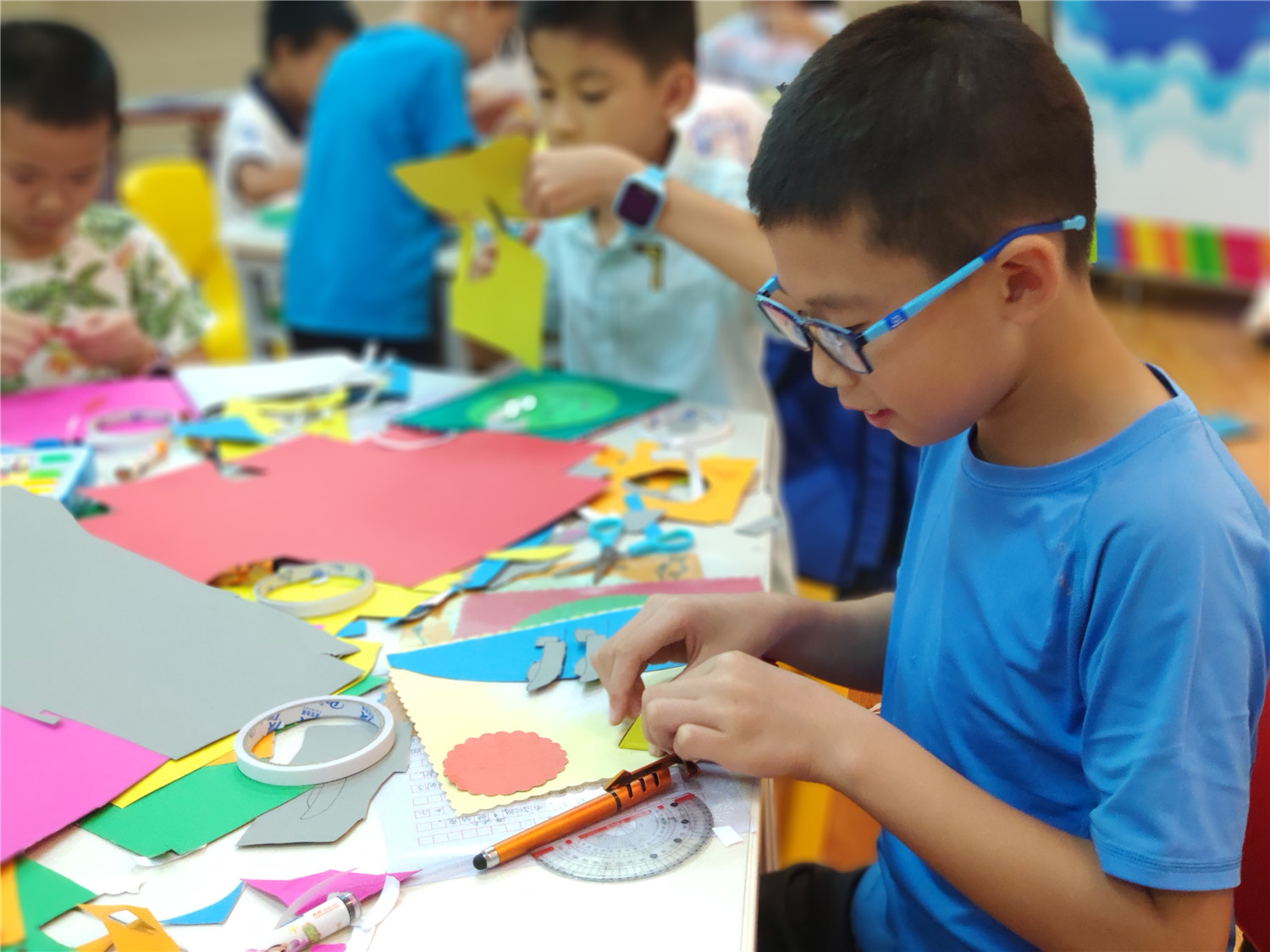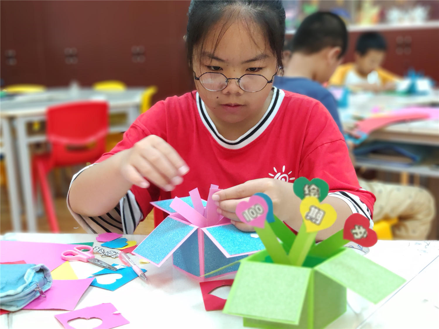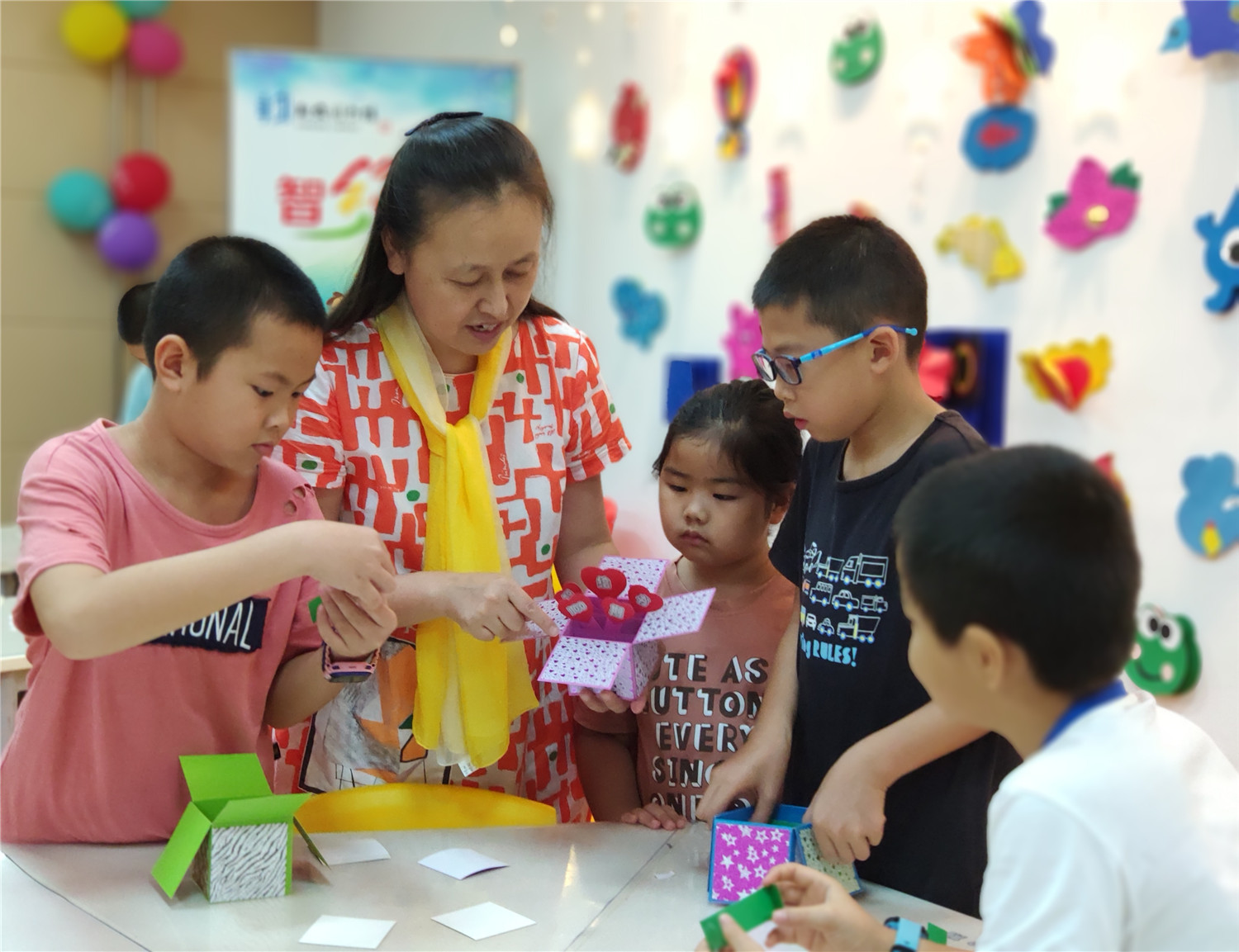 “智绘书”活动自2015年开办至今,已举办100场,是针对9至12周岁读者开设的一个集阅读指导、能力锻炼、美德教育的创意课堂。围绕特定主题,以手工书DIY制作为主线,通过教师传授知识、图书推介、阅读指导,引导小读者依托图书馆查找和收集、整理材料,发挥各自的聪明才智,编写故事、设计插图、剪裁制作造型各异、五颜六色的立体手工书,培养小读者的创新、写作、绘画、编辑、美工及沟通交流、协作、动手等能力。