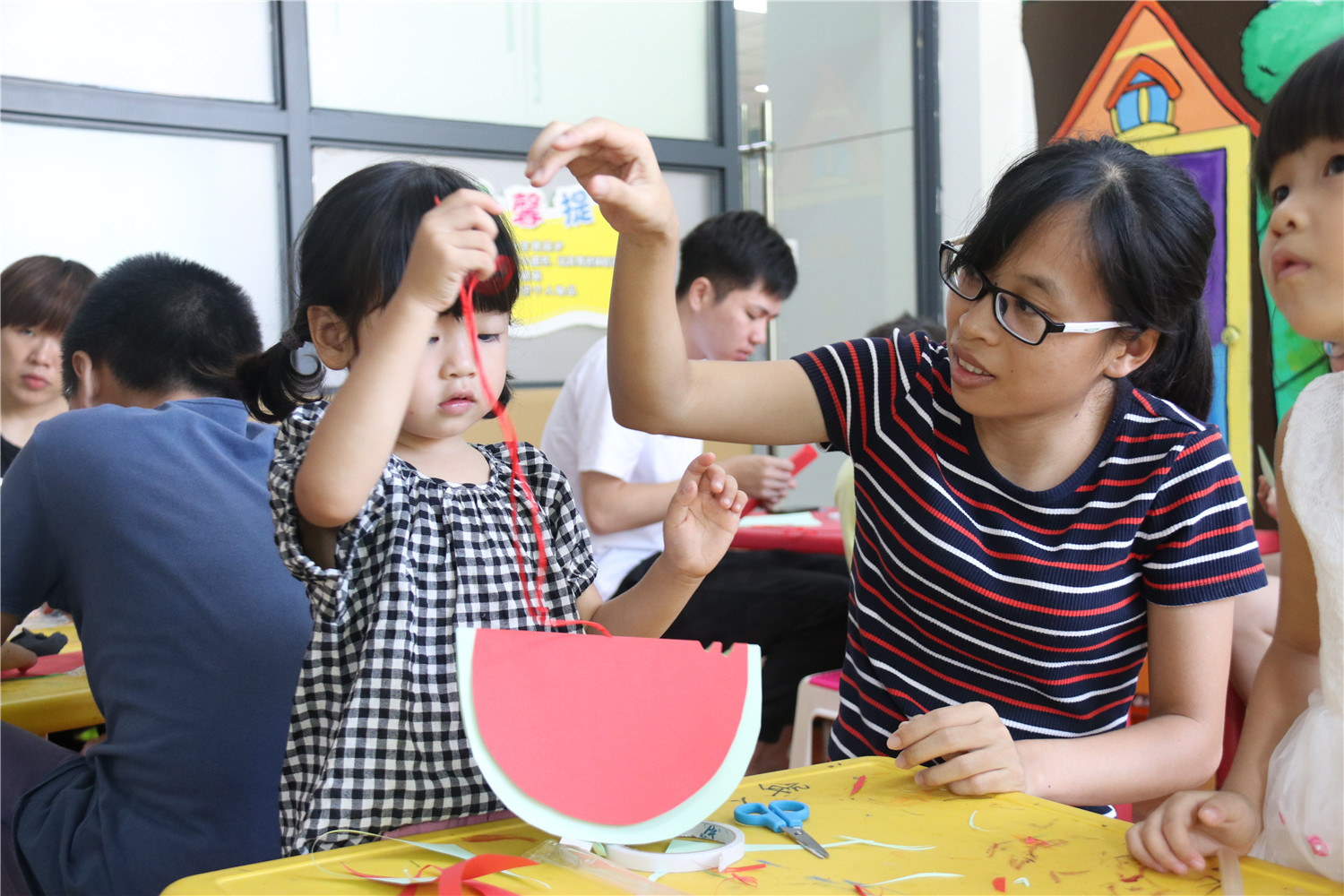 8月18日,翔安区图书馆在一楼低幼阅读体验区举办了“亲子阅读坊”2019年第14场活动。翔安区新店第二中心幼儿园的2名教师志愿者为到场的低幼小读者和家长带来了《蚂蚁和西瓜》的绘本故事,让他们感受蚂蚁的勤劳、乐天、聪明和团结合作的精神。手工制作环节,老师还指导他们制作“西瓜”挂饰。活动结束后,老师讲述了各式各样的绘本,并与家长交流,指导亲子阅读。