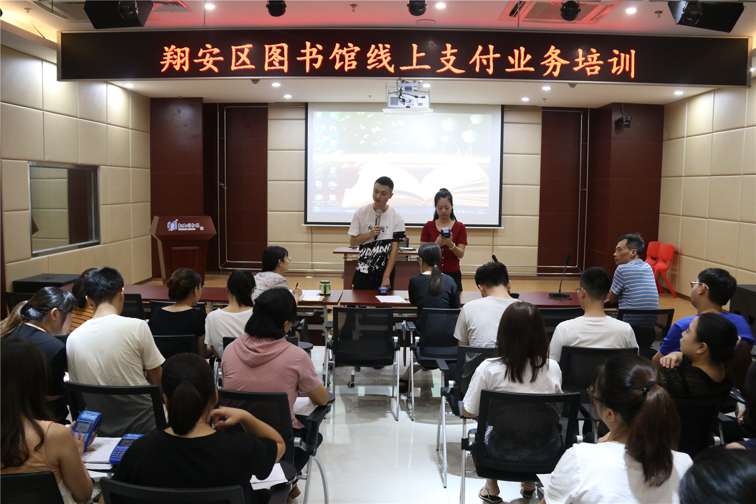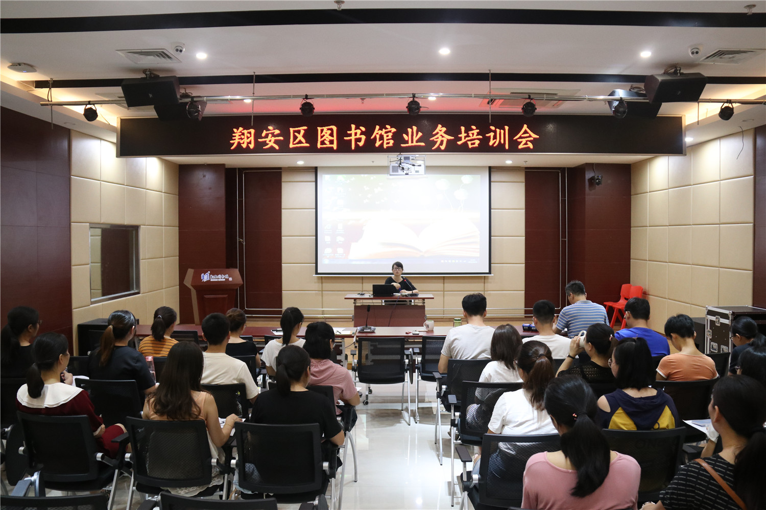 8月23日,翔安区图书馆召集总馆、分馆、邻里书屋全体工作人员在二楼报告厅参加业务培训会。