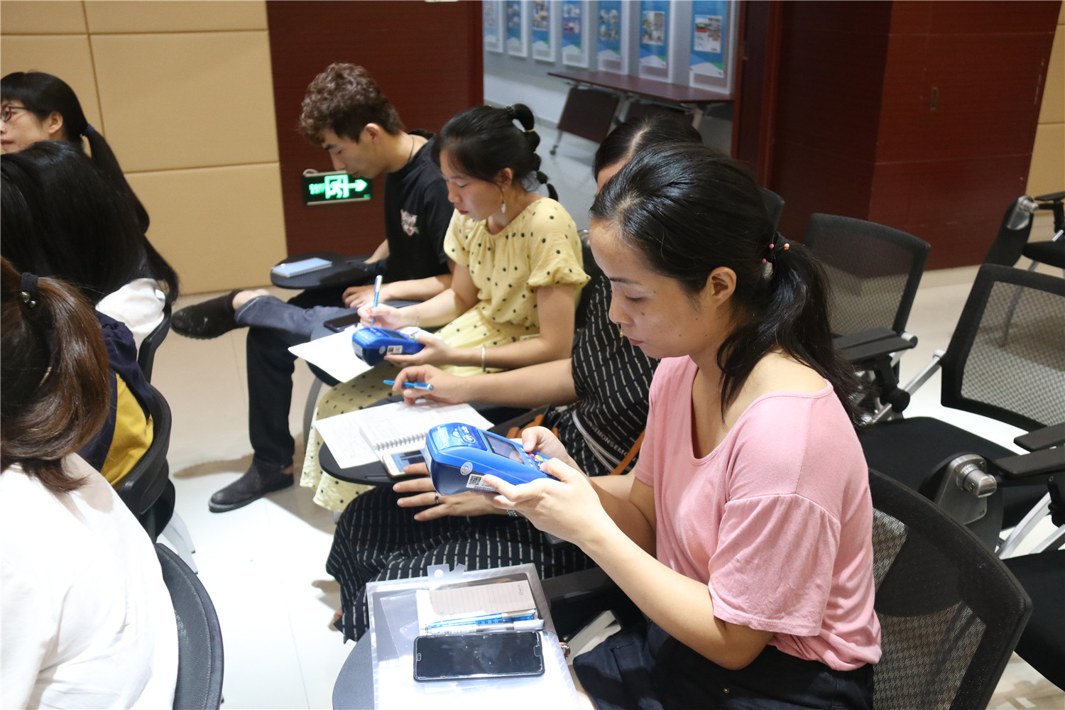 培训还邀请银联的技术人员为馆员们进行线上支付的业务培训,他通过一对一指导馆员操作pos机,让他们熟悉银联卡、微信、支付宝的支付方式,今后将为读者带来“无现金”支付押金、滞纳金的支付体验。