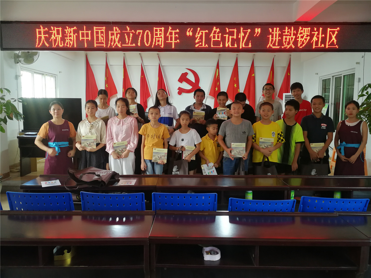 为了庆祝新中国成立70周年,8月22日、26日、28日翔安区图书馆新店分馆联合新店镇文化中心开展新店镇“红色记忆”进社区活动,传承“红色基因”,传播爱国主义精神。这三天时间进了垵山社区、前浯社区、祥吴社区、下许社区、湖头社区、鼓锣社区、东园社区,活动中首先号召广大青少年放下手机拿起书籍,培养阅读习惯,邀请东园社区的老人协会张荣加对小朋友讲解东园社区老革命的故事,也进行了问答有奖活动,在活动的最后给小朋友赠出了翔安红色记忆系列连环画和小礼品。