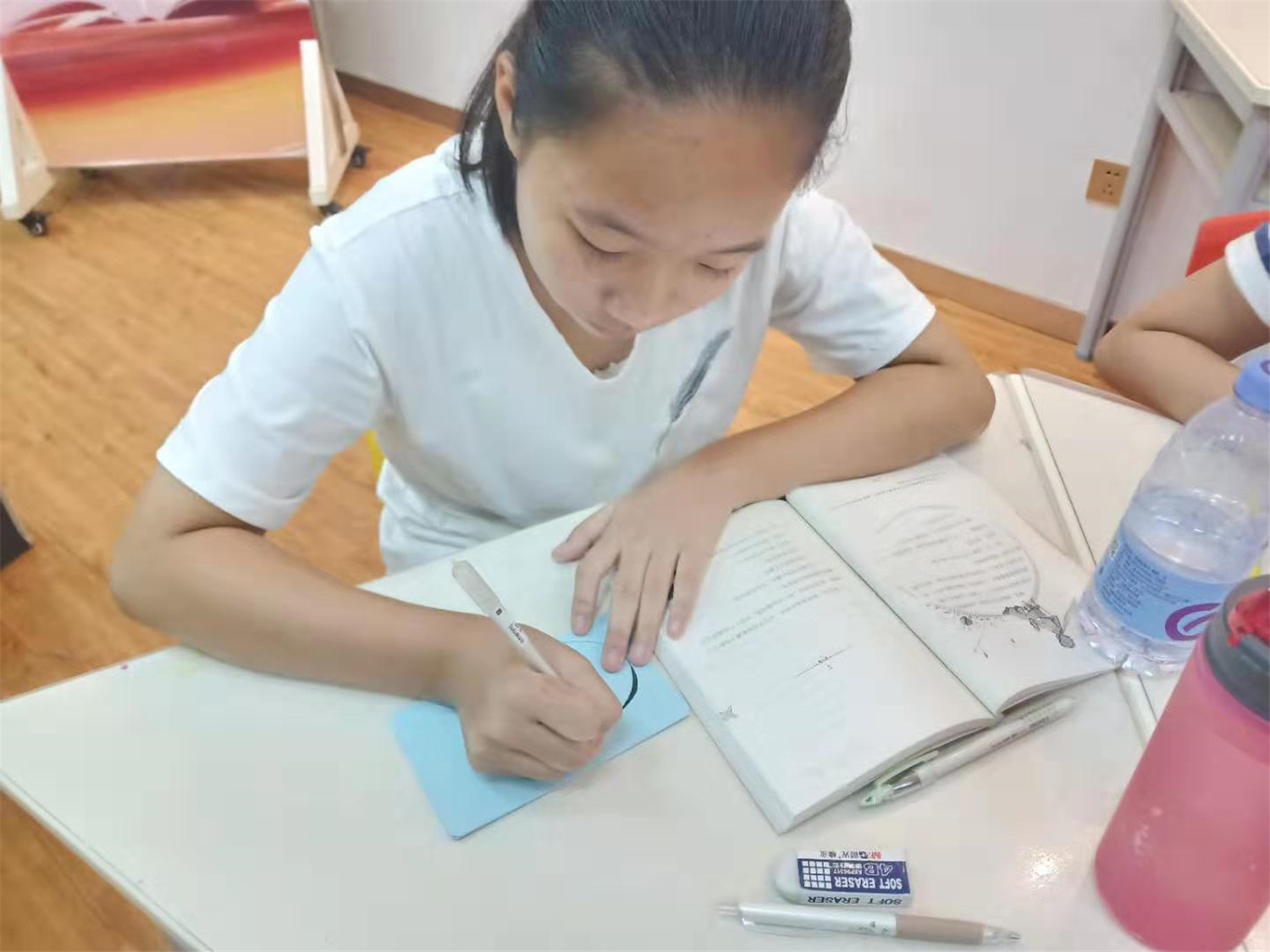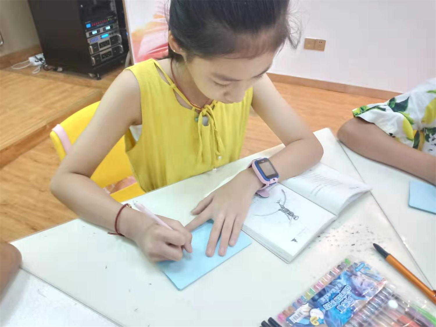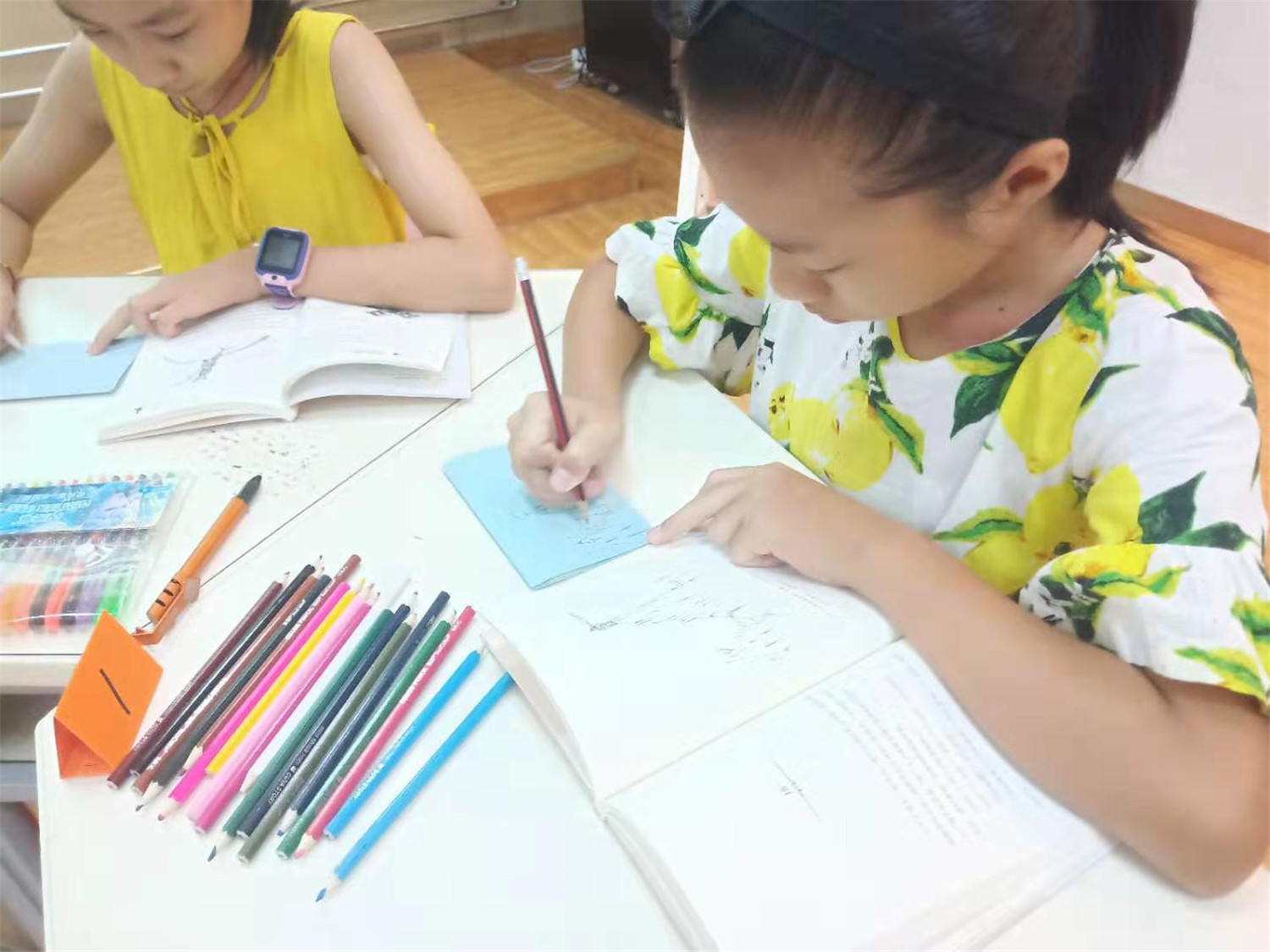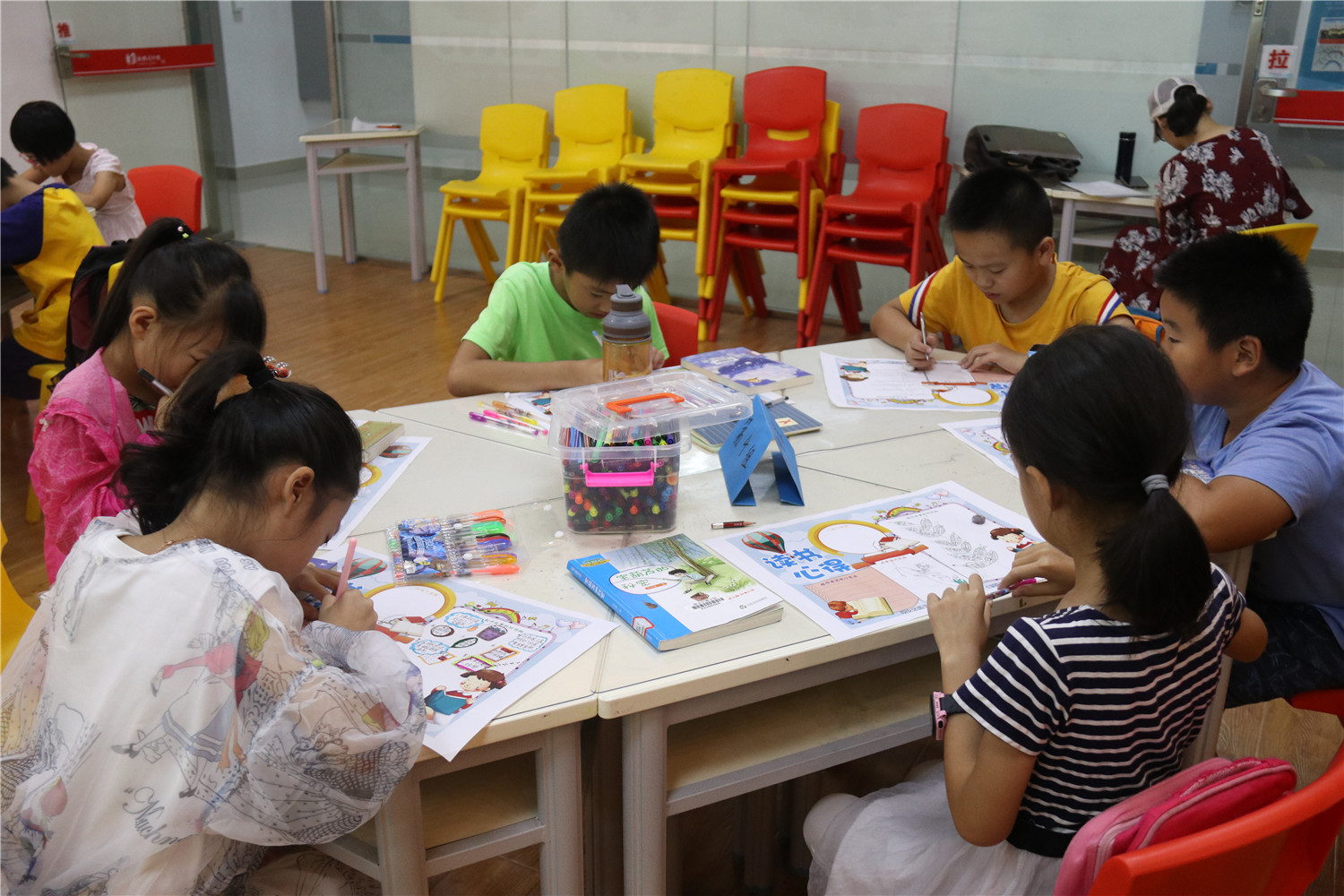 读书会的最后一个小时,领读老师给每人发放了精心准备的空白明信片,让大家DIY:画下书中印象最深的场景,摘录一段最富有哲理的话语,并创编一个“小王子来到了我的星球”的小故事,小读者们都极其用心,无论是图还是文都深深寄托着大家对小王子的喜爱之情。自此,《小王子》这本书终于被我们所驯养。