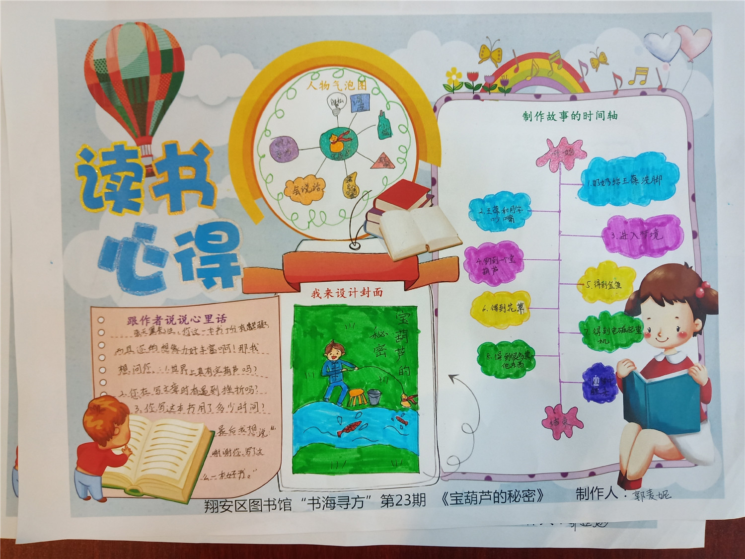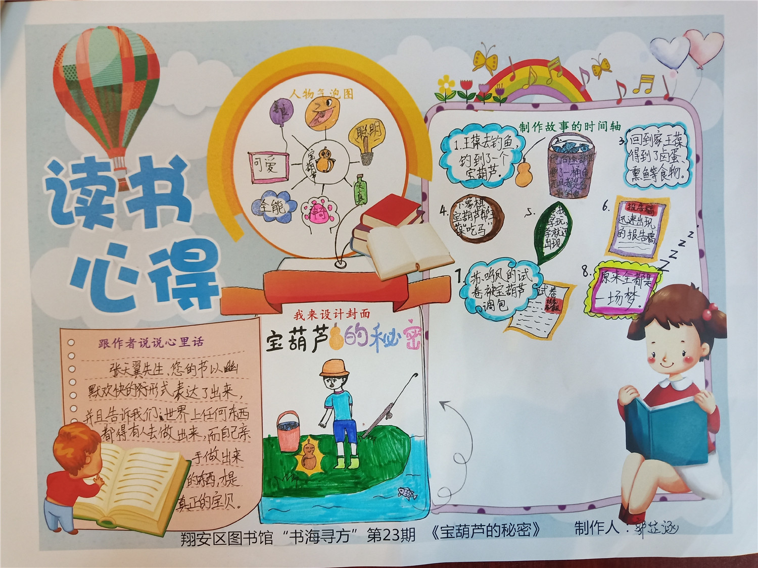 第23期活动的参与对象为小学三、四年级的学生,精读图书《宝葫芦的秘密》,是张天翼创作的著名儿童文学作品,它陪伴了几代人的成长,并继续影响着今天的孩子,被列为新中国成立以来我国童话创作中的重要收获。故事讲述的是一个叫王葆的小学生,好吃零食,又爱幻想,一天,他获得了一个宝葫芦,可以不费事不操心地获得一切,可是,后来给他带来了很多烦恼,家人误解,同学疏远,最后,王葆惊醒,原来是南柯一梦。