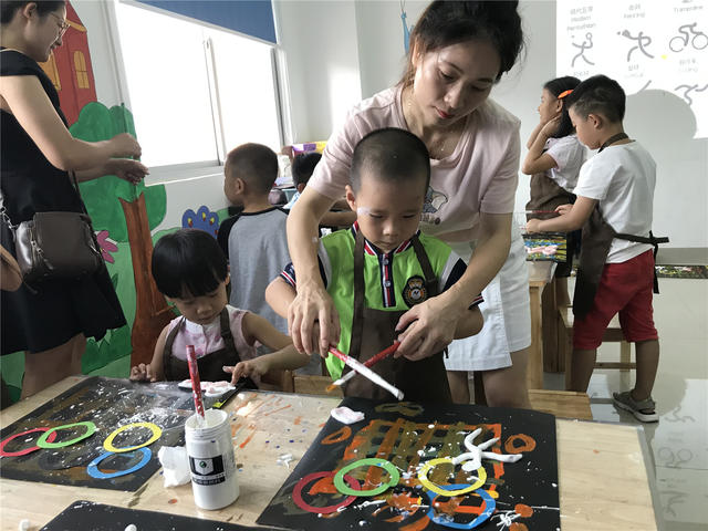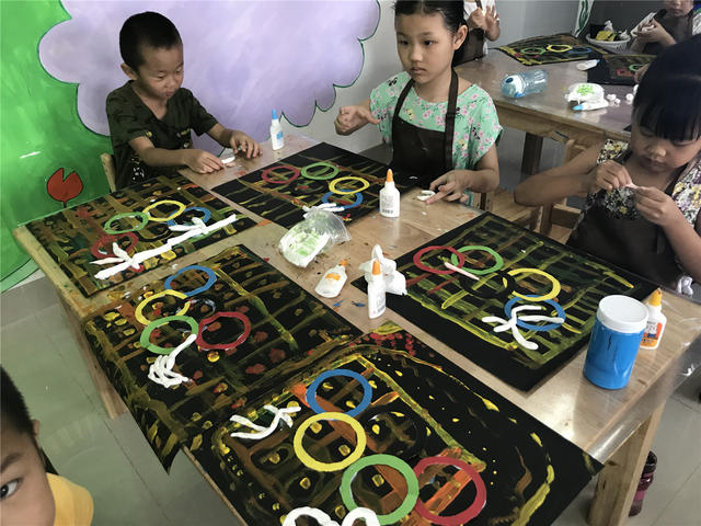 为了满足小朋友感受美的情感教育,培养儿童创造力、想象力、思维能力,能够通过独特的笔触、动作和语言,来表达自己认识和情感方式。2019年9月7日下午,翔安区图书馆新店分馆举办了“我画画我快乐”创意儿童美术活动。此次老师所教的是“奥运五环”,在动笔之前老师先给小朋友引导奥运五环与运动项目的结构与颜色,并且介绍了奥运五环的由来;在绘画中老师耐心的为小朋友指导;绘画作品展示了对奥运会的理解和对未来奥林匹克世界的美好憧憬。