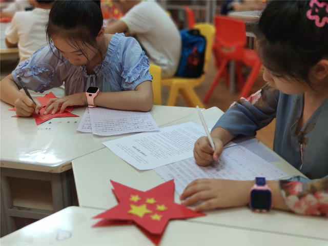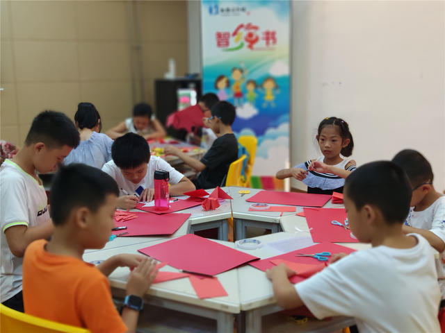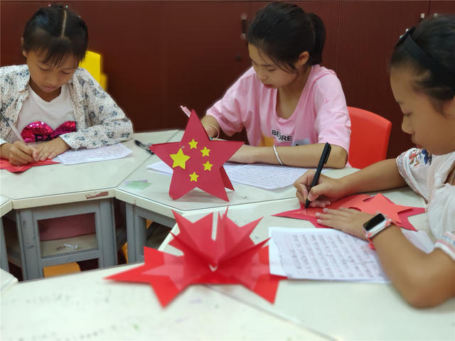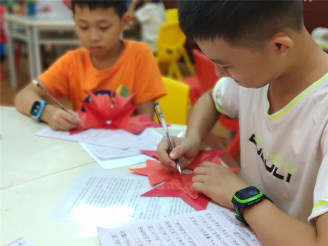 本期“智绘书”活动,香橼老师首先向小读者们介绍了厦门的革命英雄故事,指导他们阅读厦门市中小学生红色文化读本《鹭岛红星闪耀》,让他们走进历史,了解发生在自己所生活的土地上的革命故事。老师还教他们读后感的“六字诀”,并让他们阅读《涉海横渡 解放大嶝岛》撰写读后感,同时现场进行写作指导。在手工书制作环节,指导他们制作赤诚的立体“红五星”智绘书。