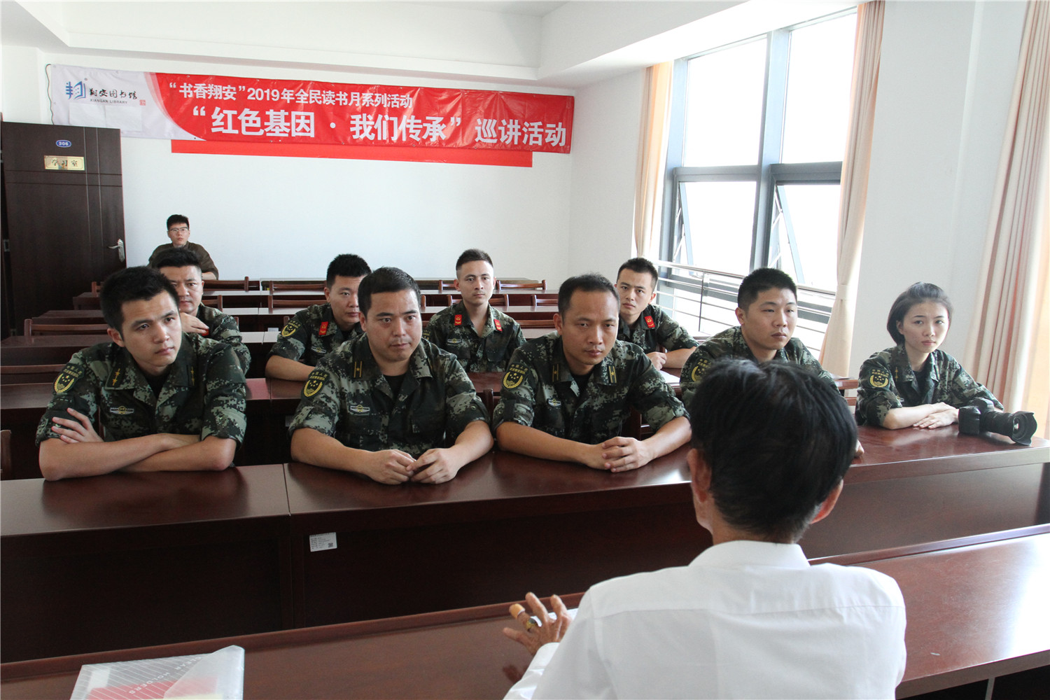 为庆祝中华人民共和国成立70周年,翔安区图书馆开展“红色基因 我们传承”巡讲活动,9月29日,邀请内厝中心小学校长许牧童走进厦门海警局翔安工作站,讲述《许英宗的故事》,声情并茂、通俗易懂、精彩生动的为到场工作人员讲述发生在翔安本土的英雄人物的事迹。