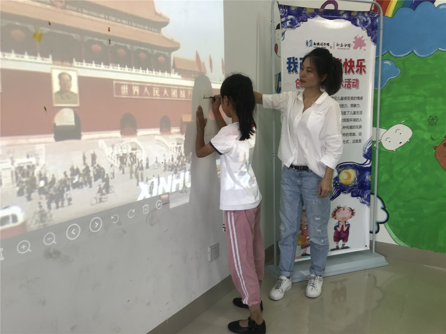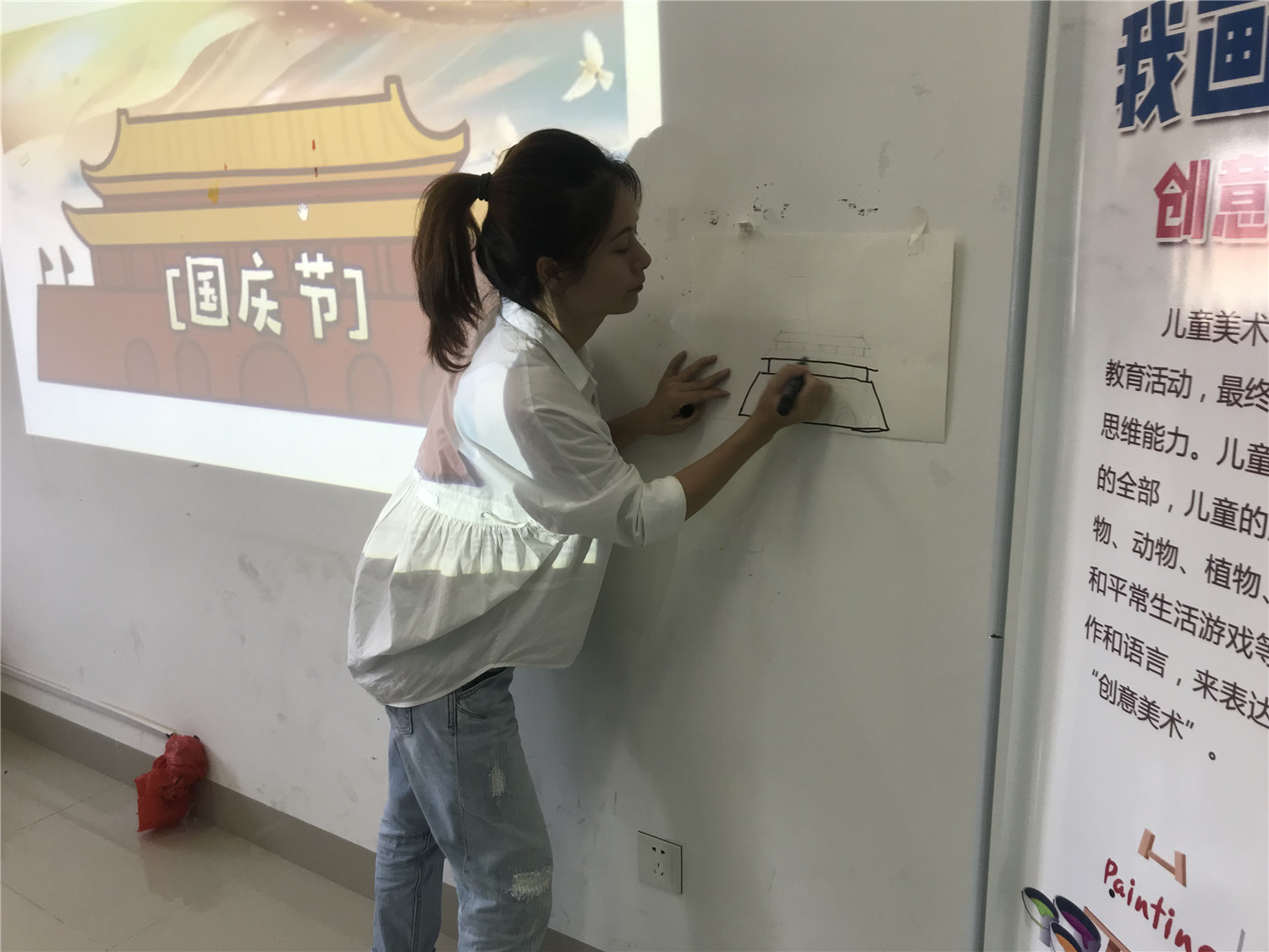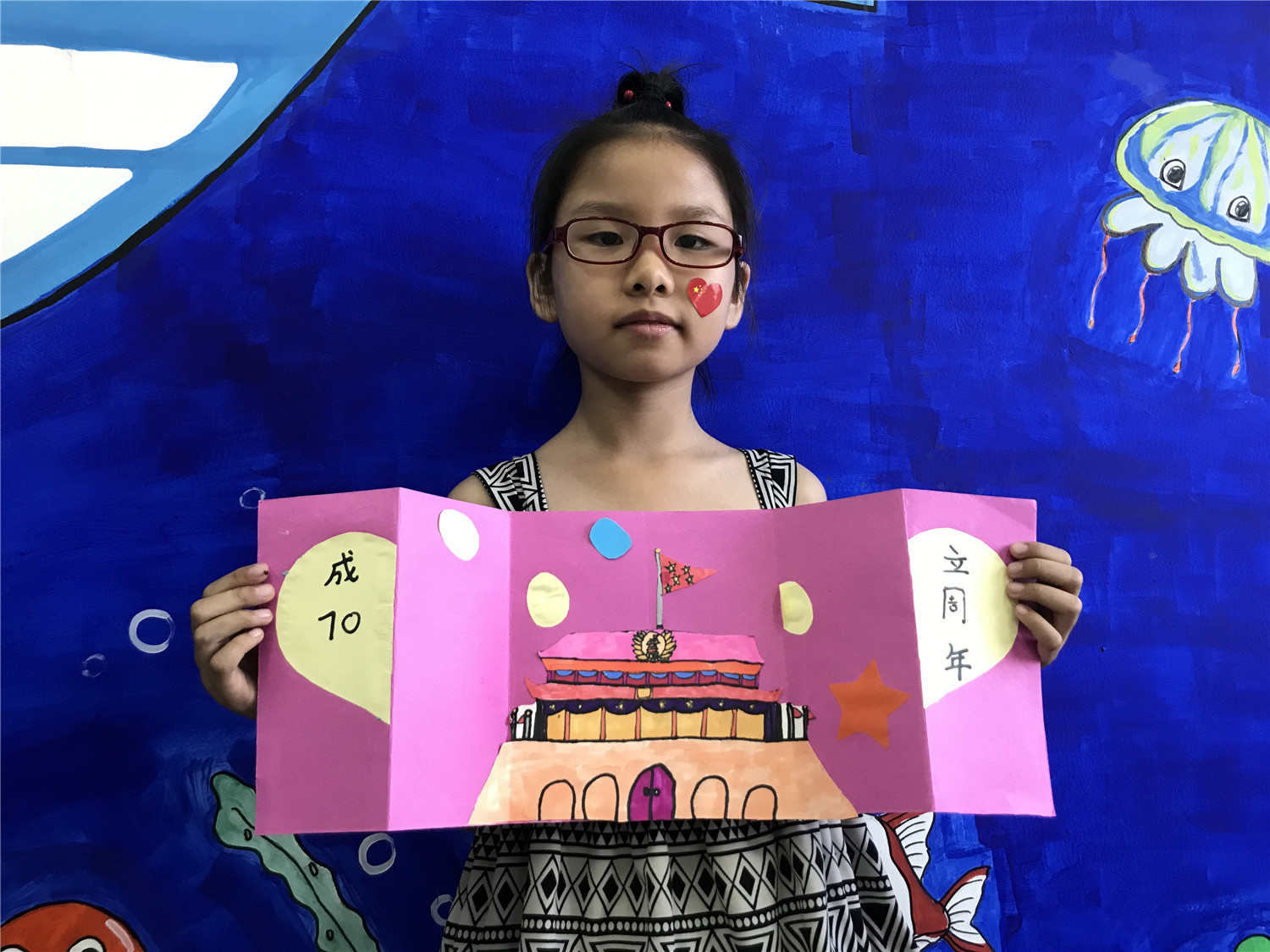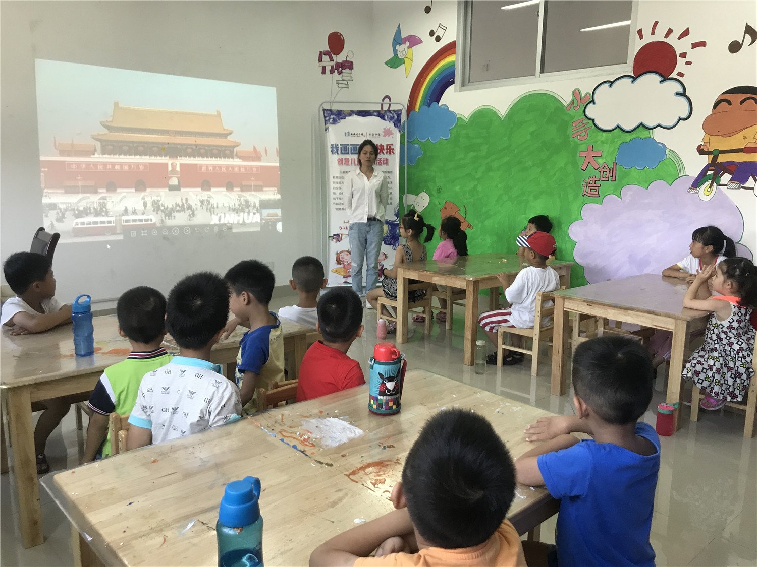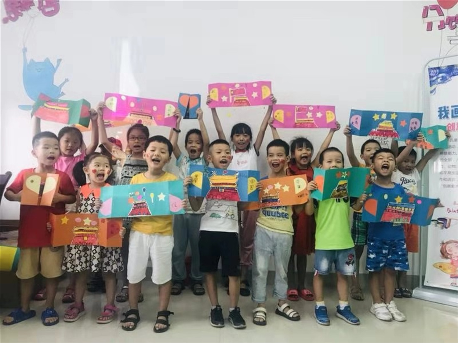 2019年10月1日是中华人民共和国成立70周年,天安门人山人海,乐声阵阵,在这喜庆的日子里,新店分馆举办了“我画画我快乐”创意儿童美术活动。此次老师所教的作品是“天安门”,作品由卡纸作为贺卡与绘画的天安门相结合,小朋友个个成竹在胸,他们有的大笔勾勒,有的精细描画,有的大胆填涂。甚至有的小朋友一边画一边唱着国歌 ,个个内心都热血沸腾的参与此次的活动。