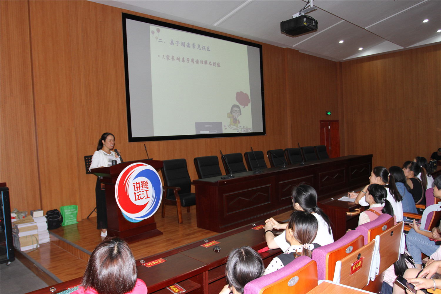 讲座上,香橼老师首先向在座学生们介绍了“为什么要亲子阅读”、“亲子阅读的常见误区”,向在座家长分享亲子阅读的秘诀,并推荐亲子阅读适合的书。讲座的最后,戴慧萍老师还向在座家长赠送了她所著的《游走的时光》。