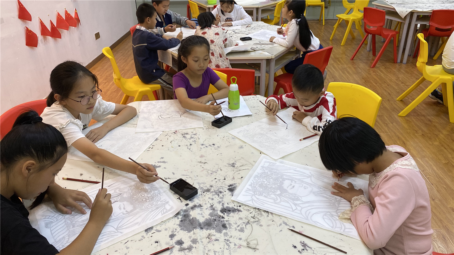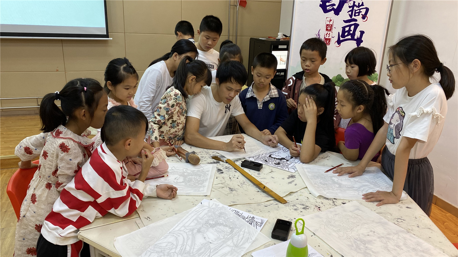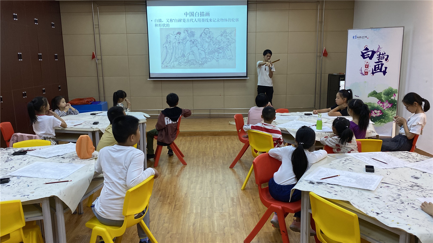 本次课堂学习了人物白描。小读者在老师的指导下,通过墨线勾描人物,表现人物的轮廓和神态。