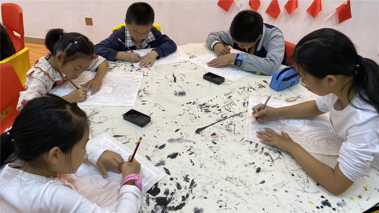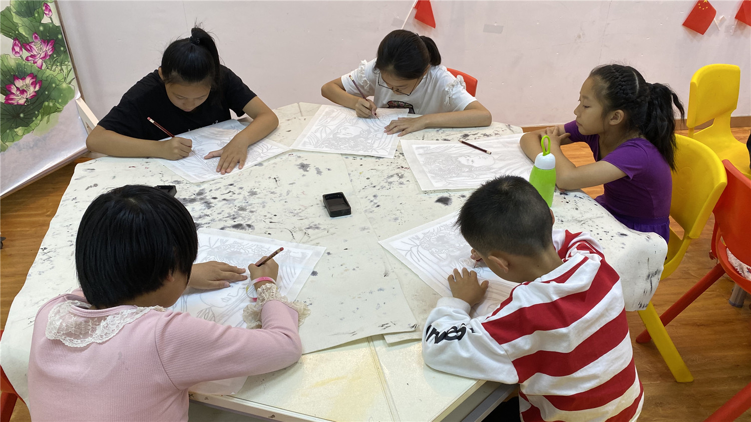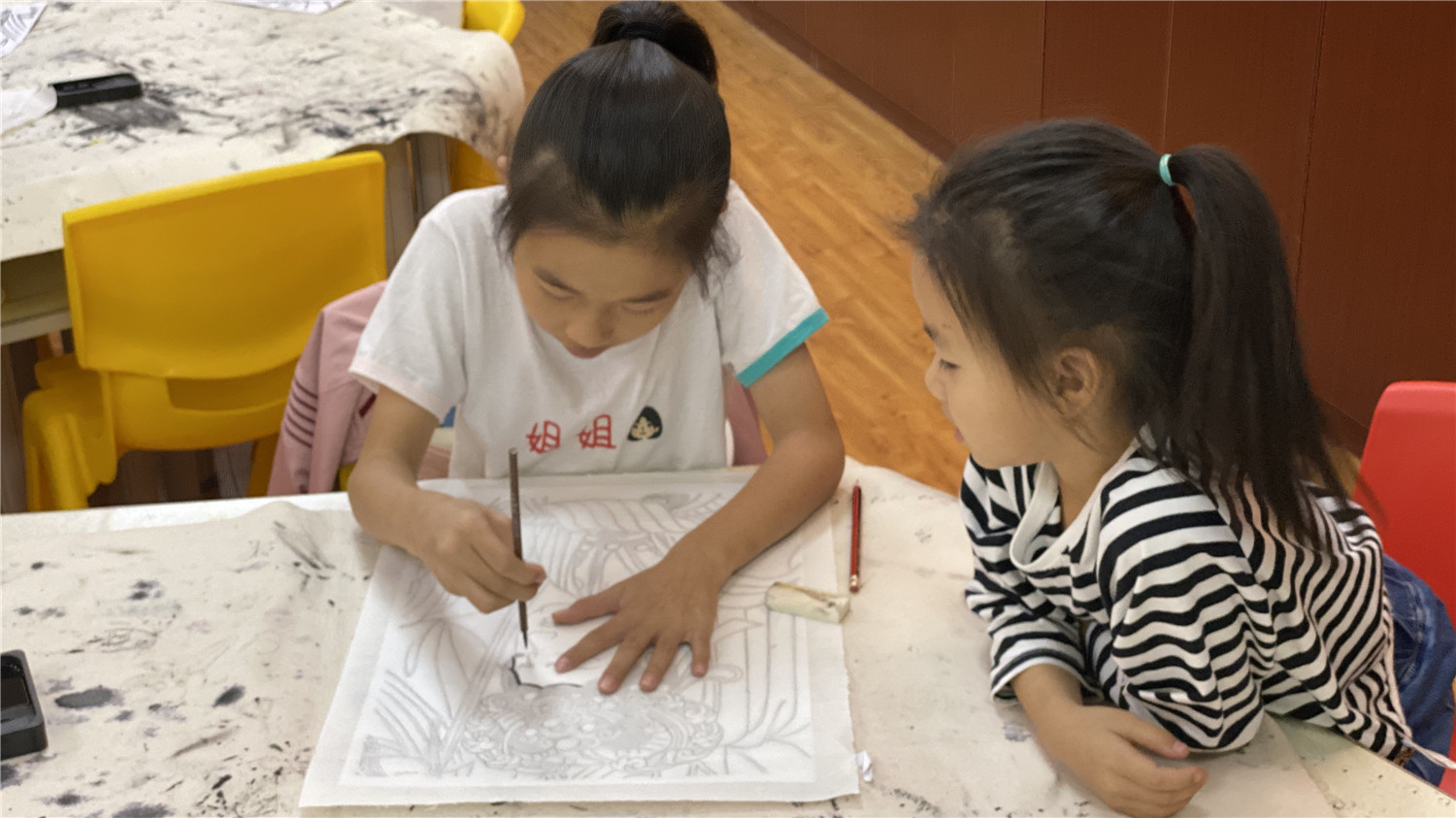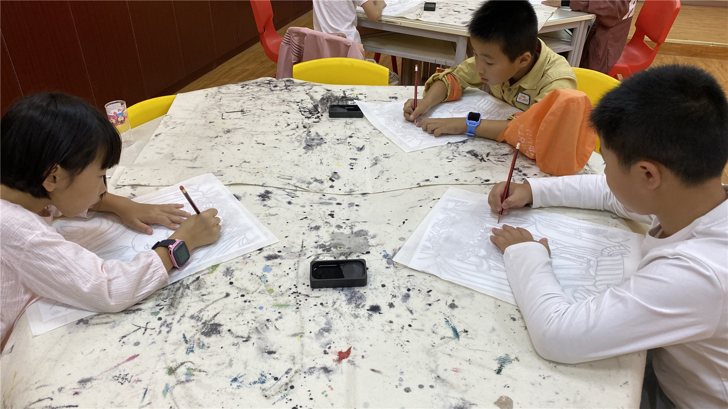 本次课堂学习了人物白描。小读者在老师的指导下,通过墨线勾描人物,表现人物的轮廓和神态。