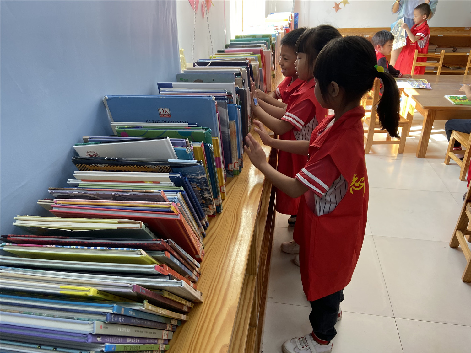 2019年11月1日,内厝中心幼儿园老师带领小朋友们走进内厝镇图书馆,让小朋友们体验当一回小小图书管理员,感受图书馆的读书氛围,在图书馆工作人员的指导下,进行学习图书馆工作的基本知识,熟悉馆藏图书的分类和布局,协助图书馆工作人员进行图书借阅、上架、整架等系列工作。并在管理的过程中与其他小读者们进行交流、沟通、体验为他人服务的辛苦和快乐,培养了他们爱书、护书、读书的良好习惯,锻炼了小朋友们的社会实践与交往能力,进一步增强了小朋友们热爱劳动、尊重他人劳动果实的传统美德。