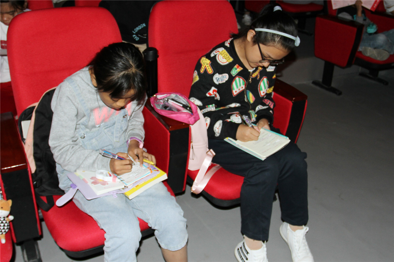 伍美珍以“亲近阅读,快乐写作”为题,与在座小读者们分享了阅读的快乐。她以自己的吃货梦想、旅行爱好等经历,以及“油炸铅笔”“晴天有时下猪”等幽默诙谐的创作小故事,告诉小读者们大量的课外阅读、读自己喜欢的书、写日记等提高写作能力的方法;小读者内心的阅读兴趣和创作喜悦马上被激发出来。现场小粉丝们异常的热情,与他们的“阳光姐姐”亲切互动,一次一次将讲座推向了高潮。