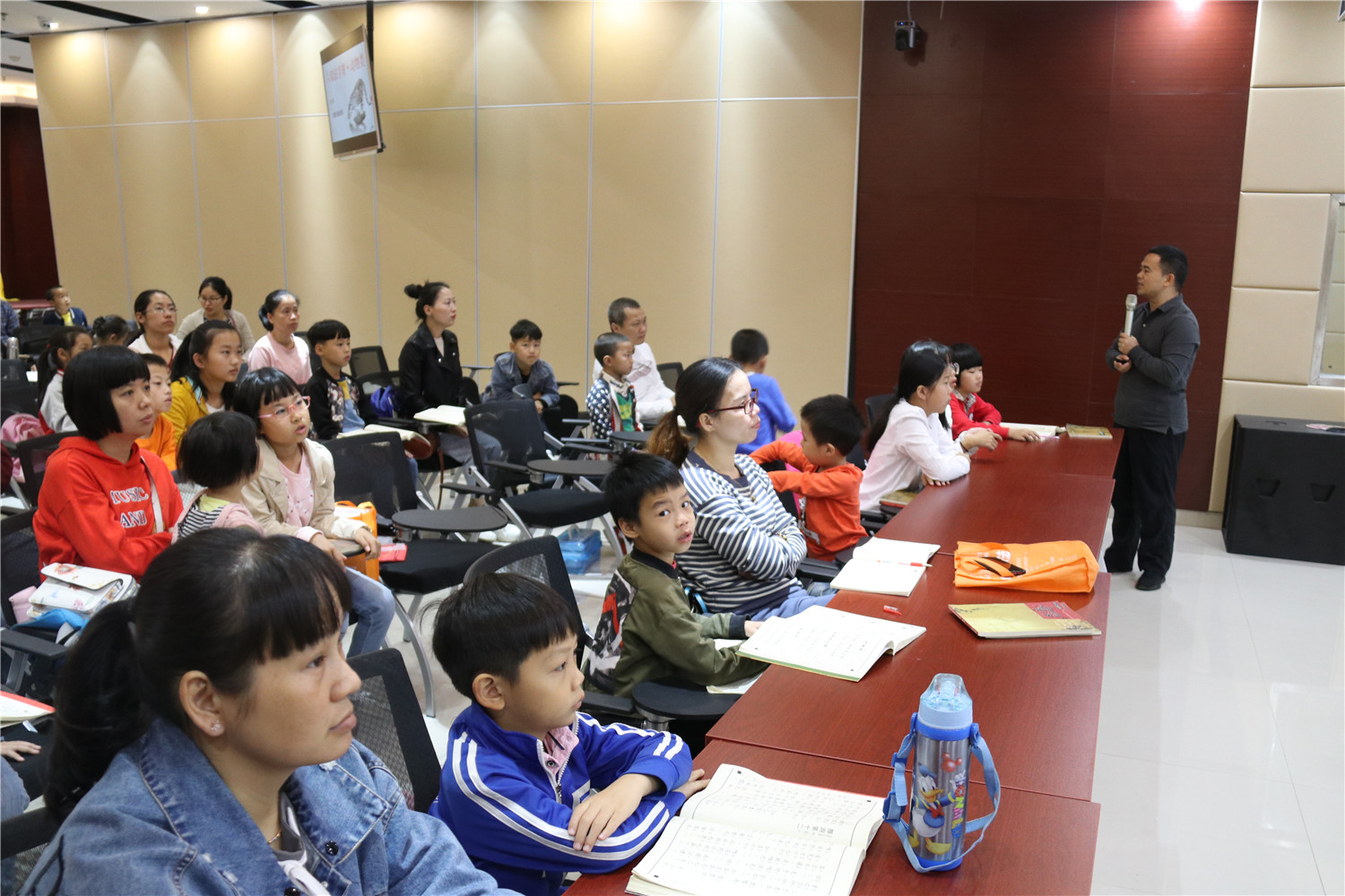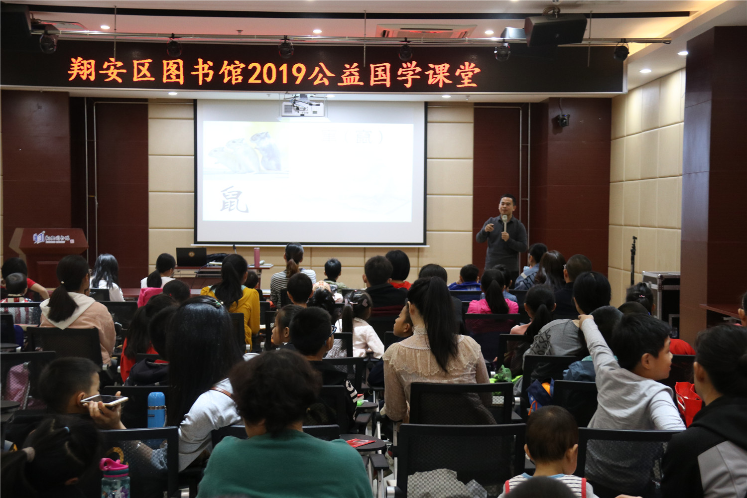 11月16日上午,翔安区图书馆举办了2019年公益国学课堂秋季第7期活动。本次活动由翔安区义雅书院院长力禾老师主持,他作了“双法字理(动物类)”的德能讲座分享,介绍了几种动物字理的由来和更替,并指导在座亲子家庭的读者诵读《论语》、《千家诗》等国学经典。课堂上有分享、有讨论、有答惑,由浅入深,亲子共学,既诵读经典、学习圣贤的智慧,又在德能分享活动中帮助读者树立正确的知见。